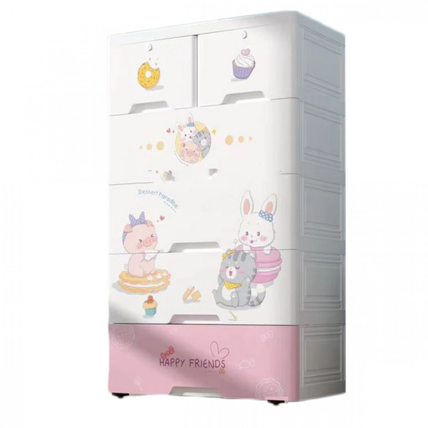 Αυτή η πλαστική συρταριέρα με διαστάσεις 100x50x38 cm είναι ιδανική για παιδικά δωμάτια, προσφέροντας πρακτικότητα και διασκέδαση σε ένα προϊόν. Διαθέτει 4 μεγάλα και 2 μικρότερα συρτάρια, τα οποία είναι διακοσμημένα με χαρούμενες παιδικές παραστάσεις που θα λατρέψουν τα παιδιά.Ο συνδυασμός της ευρύχωρης αποθήκευσης με τον παιχνιδιάρικο σχεδιασμό την καθιστά ιδανική για να οργανώσετε τα παιχνίδια, τα ρούχα ή τα σχολικά είδη με τρόπο που ενθουσιάζει τους μικρούς σας. Η ανθεκτική πλαστική κατασκευή εξασφαλίζει μακροχρόνια χρήση και αντοχή.