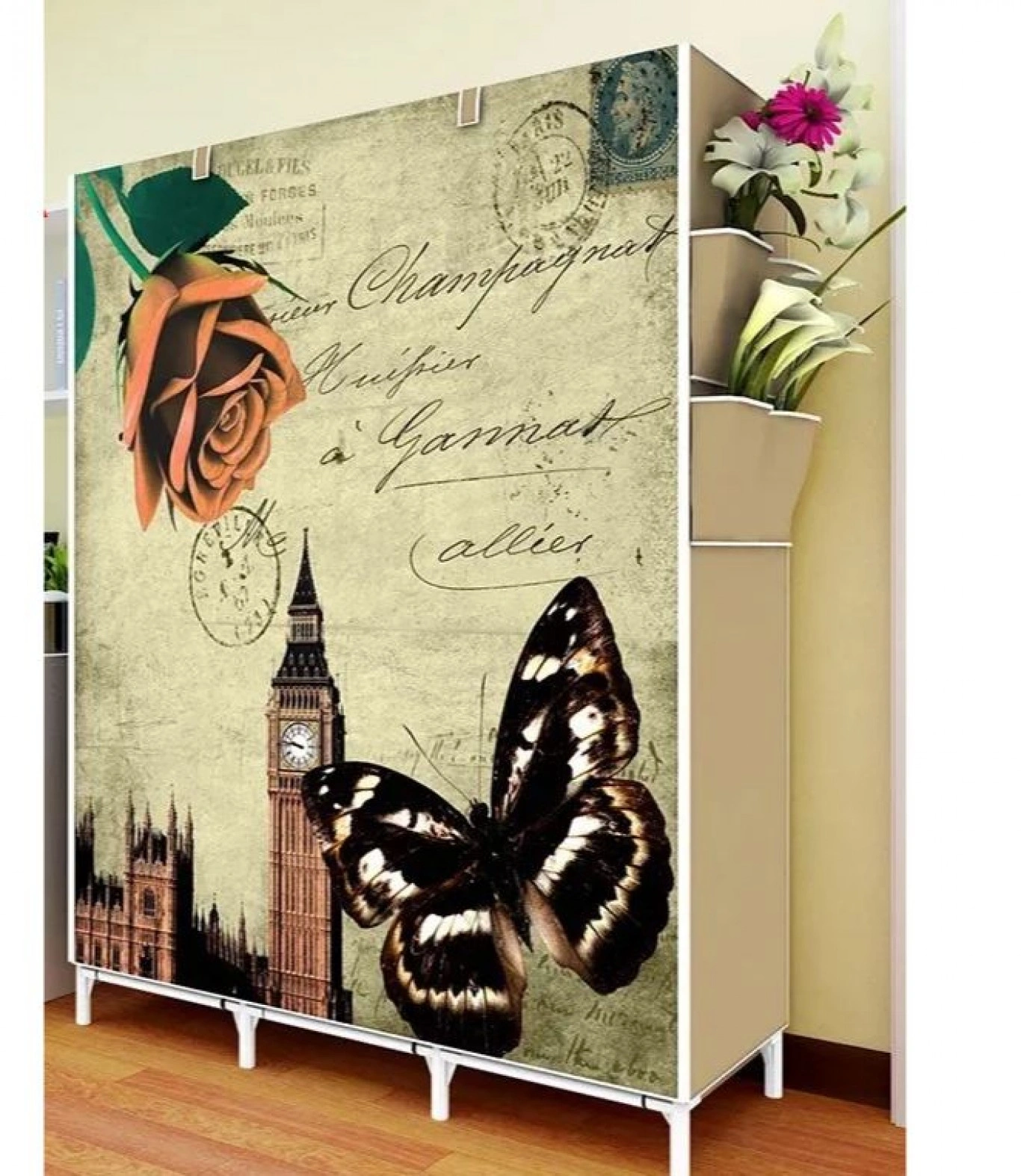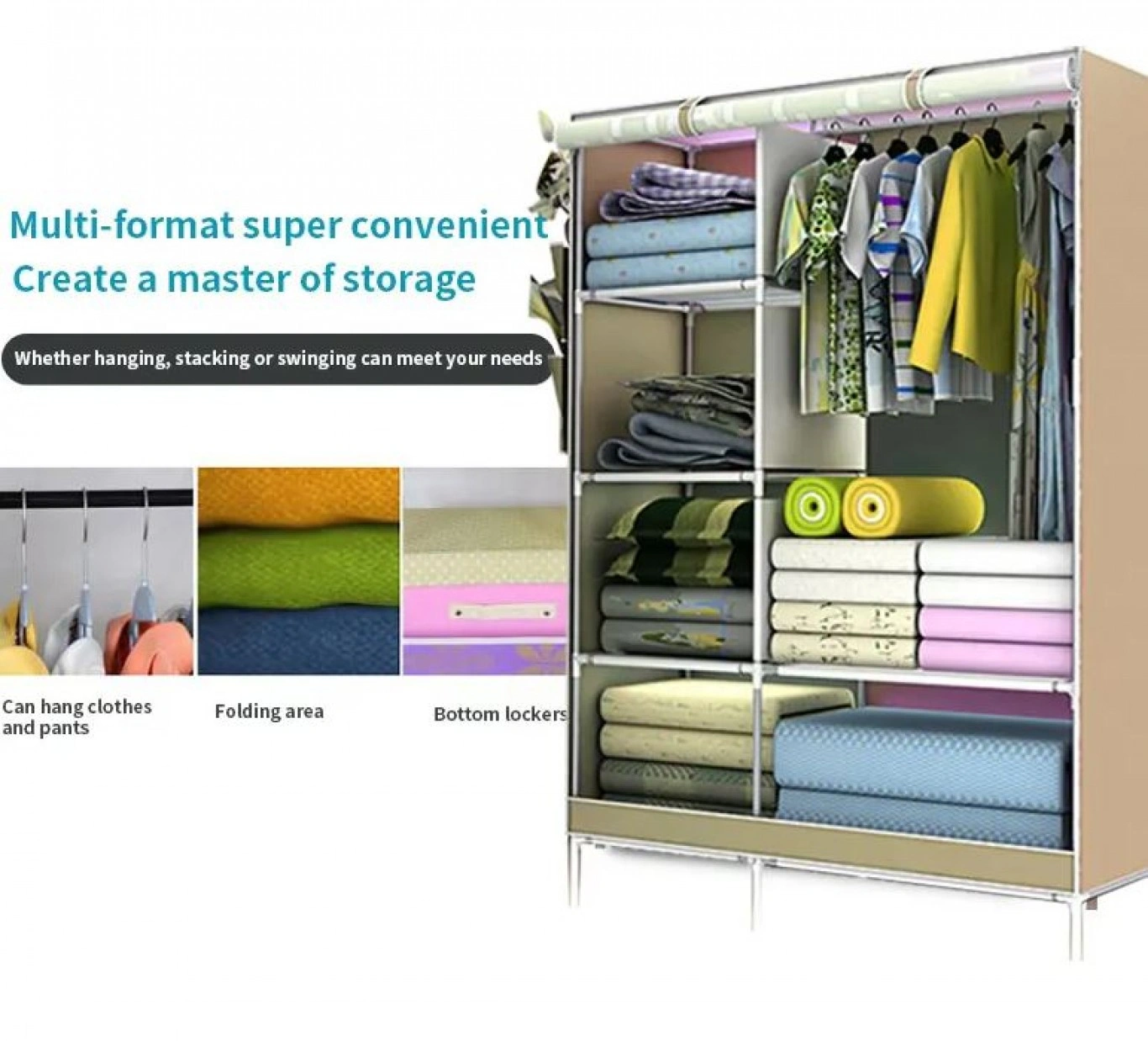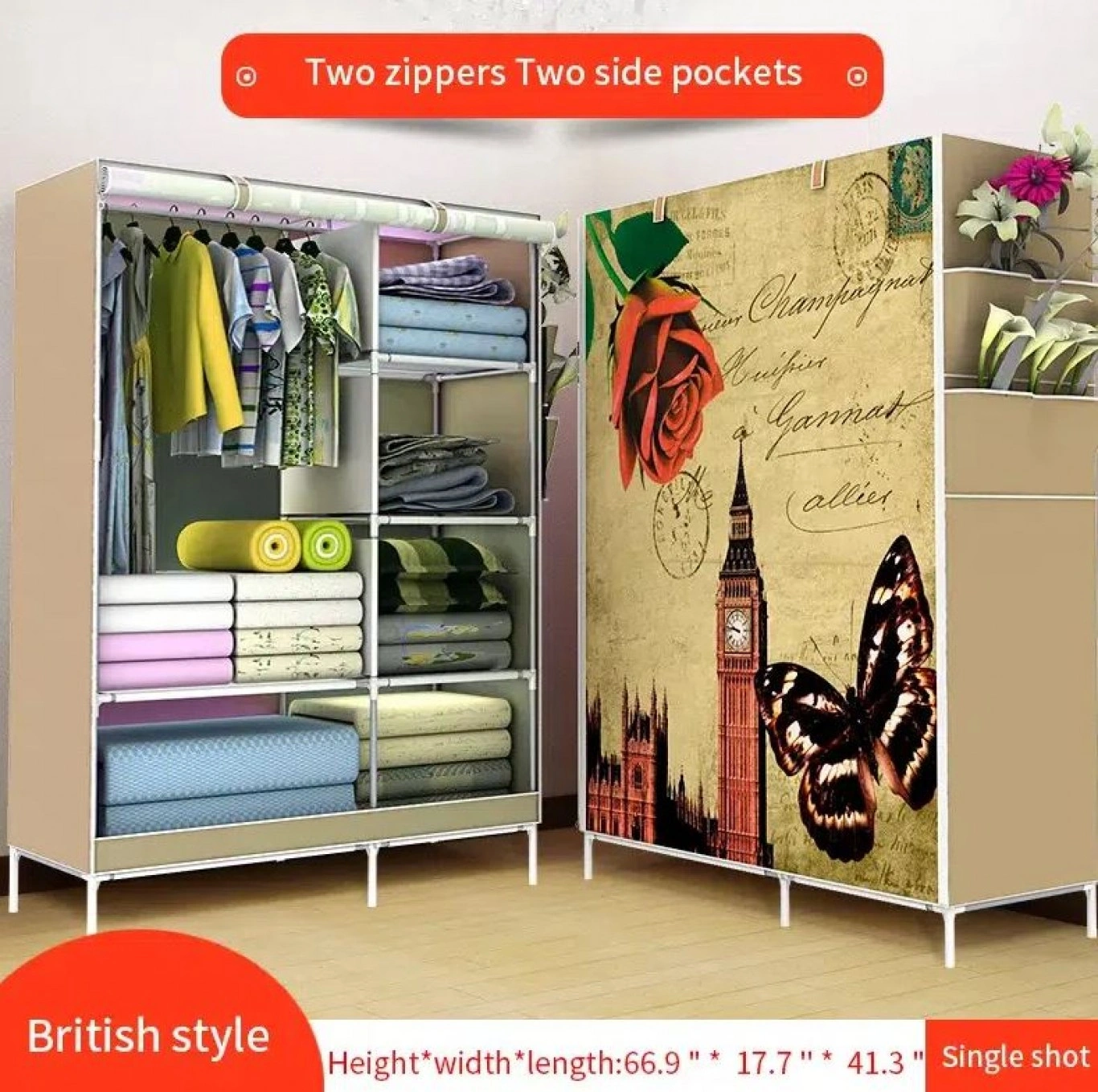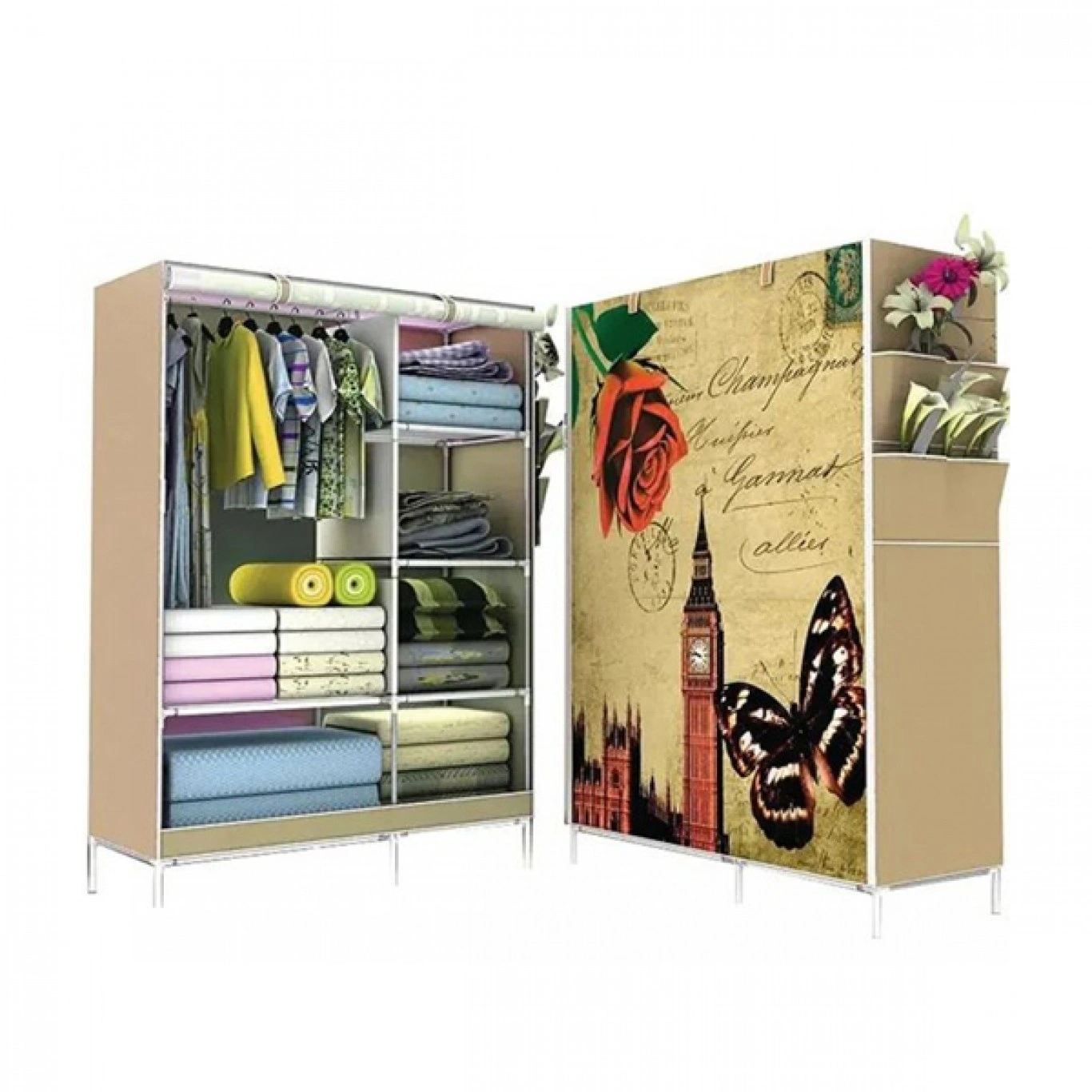 Φορητή υφασμάτινη ντουλάπα με μεταλλικό σκελετό, σχεδιασμένη να προστατεύει τα ρούχα και τα παπούτσια σας από τη σκόνη και τις βρομιές.