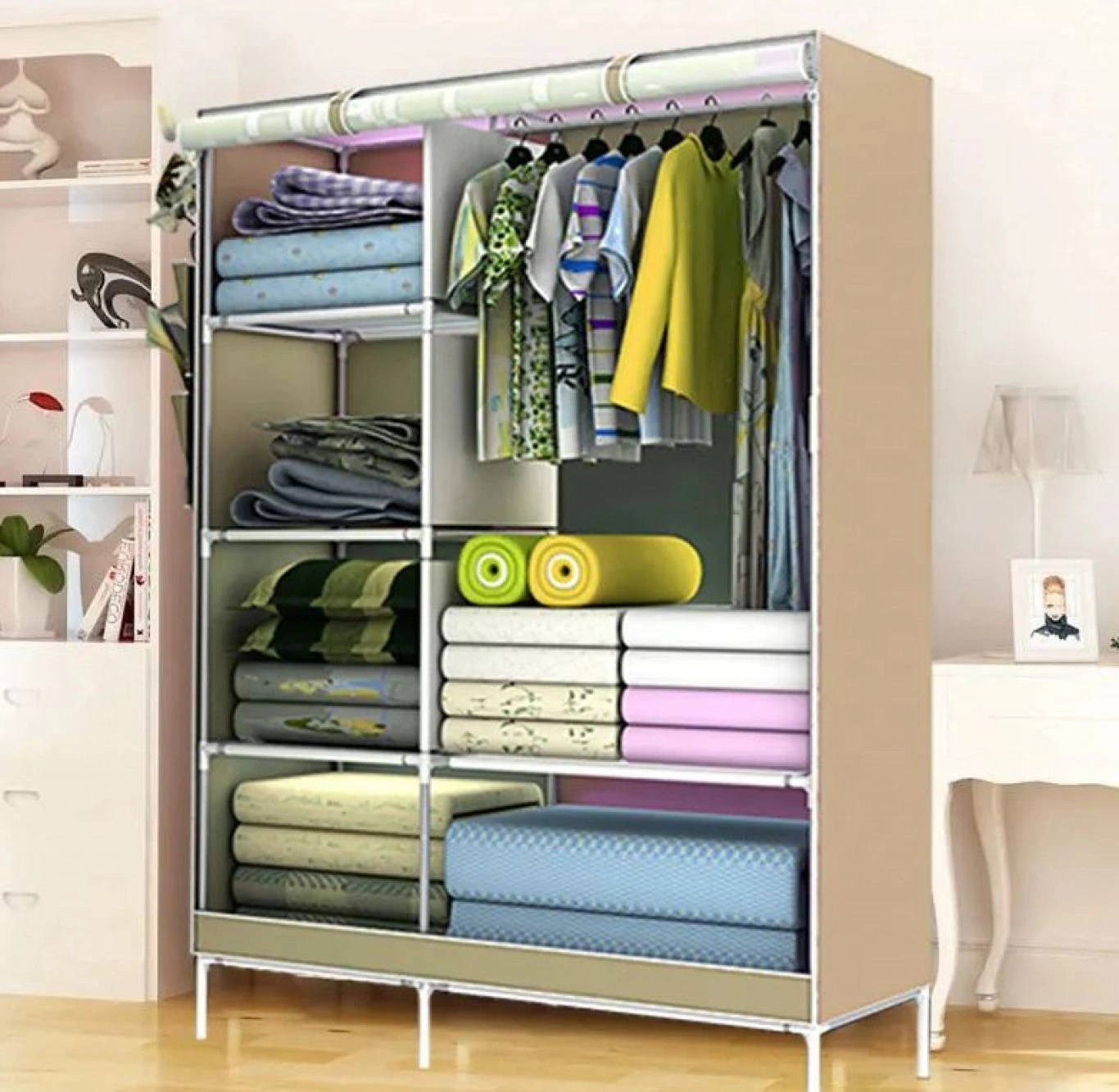 ✔️Είναι φορητή και διαθέτει ράφια και ράγες για την τακτοποίηση και αποθήκευση ρούχων, λευκών ειδών, και πολλών ακόμα αντικειμένων προστατεύοντάς τα από σκόνη και βρομιές.