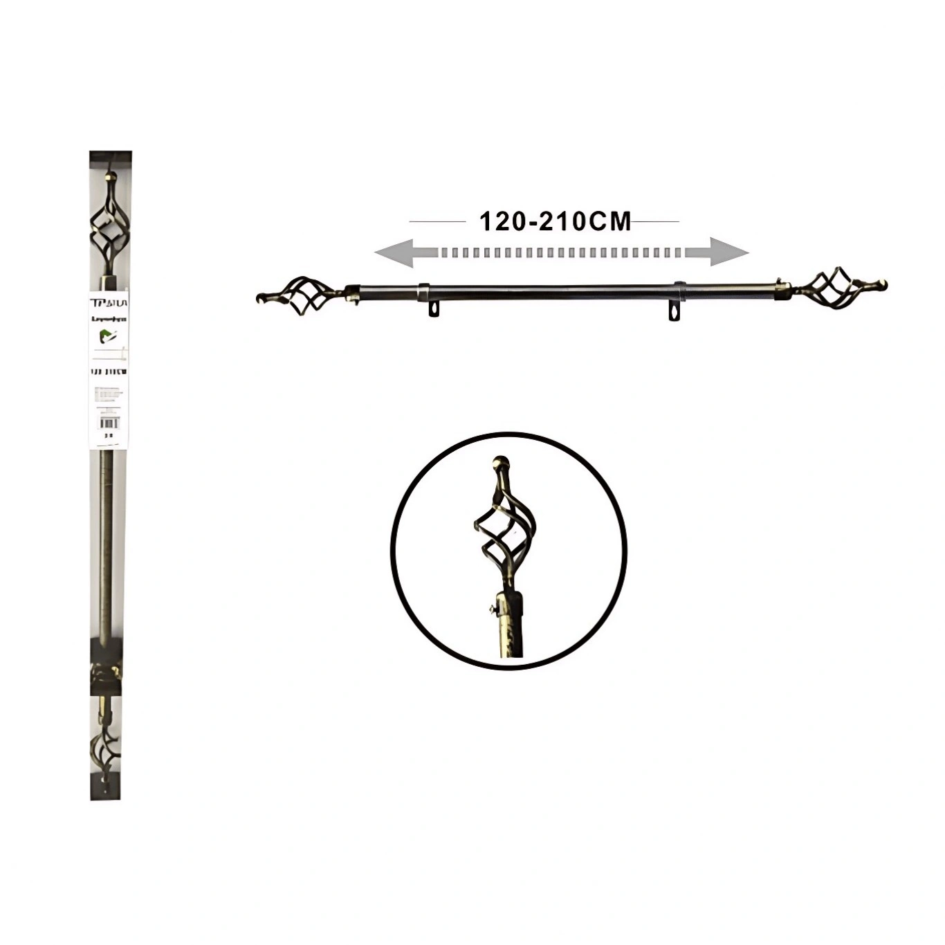 120-210cm Μεταλλικό Κουρτινόξυλο Πτυσσόμενο Μαύρο/Χρυσό Φ16-19mm 32931