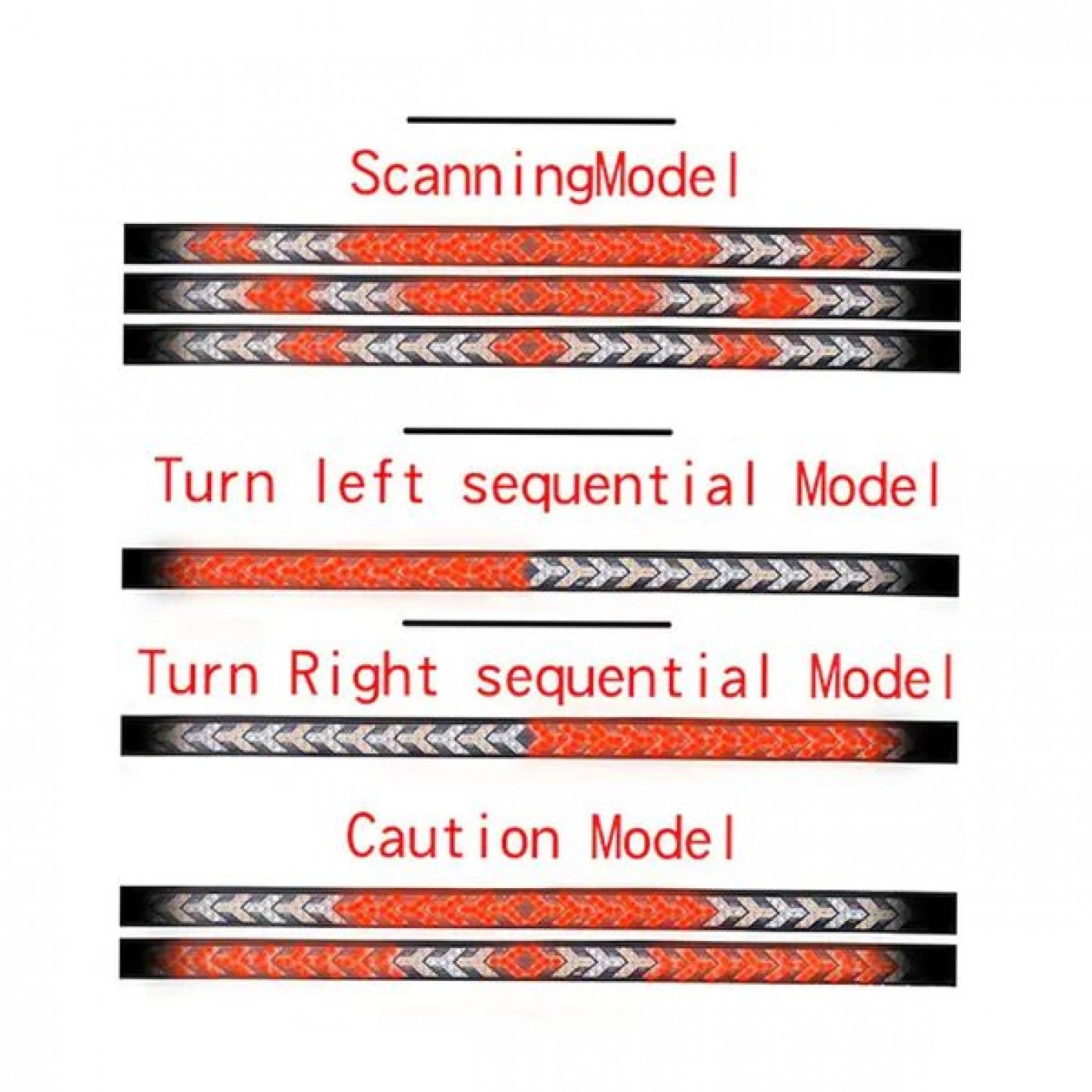 Μία προειδοποιητική Led ταινία αδιάβροχη με βέλη για καρότσα αγροτικού και πορτ μπαγκάζ αυτοκινήτου με φλας, φώτα πορείας και στοπ.✔️Λειτουργία σαν φώτα πορείας κόκκινο χρώμα σταθερό και παλλόμενο.✔️Λειτουργία φλας με ροή και βέλη (αριστερά και δεξιά).✔️Κατάλληλη για όλους τους τύπους αυτοκινήτου.✔️Διαθέτει ταινία διπλής όψης για να κολληθεί.✔️Απλή σύνδεση με μόνο 5 καλώδια ( Μαύρο – αρνητικό, Κόκκινο – Πορείας, Λευκό – Στοπ, Κίτρινο και Πράσινο – Φλας)
