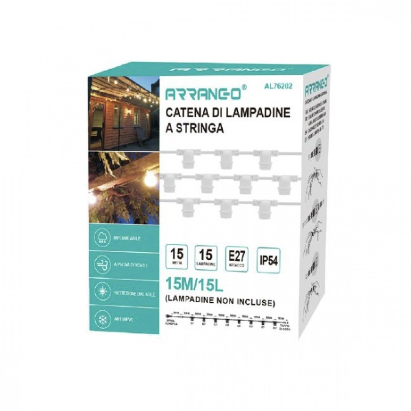 Αδιάβροχη γιρλάντα με 10 κρεμαστά ντουί E27 15m λευκή. Τοποθετήστε τους λαμπτήρες της αρεσκείας σας σε αυτή την γιρλάντα με ντουί Ε27.