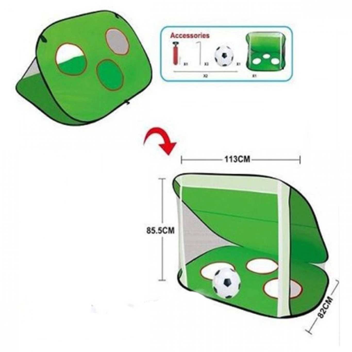 Φανταστικό σετ που περιλαμβάνει ποδοσφαιρικό γκολ που μετατρέπεται σε παιδική σκηνή, μπάλα και τρόμπα. Εύκολη συναρμολόγηση. Ευέλικτο, τα παιδιά μπορούν να το χρησιμοποιήσουν στο πάρκο, στο σπίτι, στον κήπο, στην παραλία ή στην πισίνα.