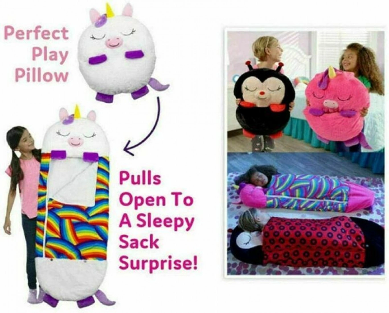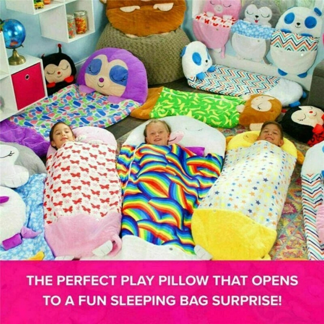 Ενας διασκεδαστικός, χνουδωτός φίλος και ένα τέλειο μαξιλάρι παιχνιδιού ! Χνουδωτοί φίλοι που ανοίγουν και μετατρέπονται σε έναν άνετο υπνόσακο έκπληξη.