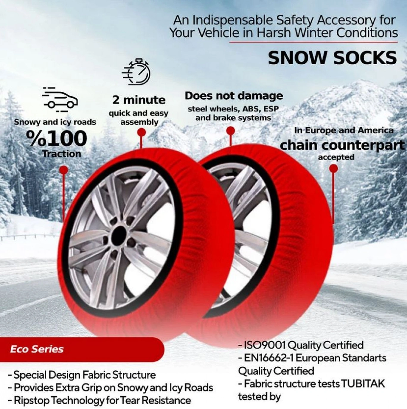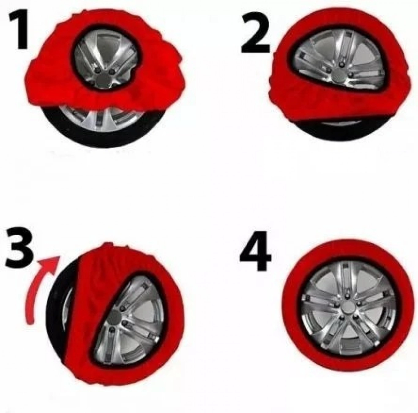 Δύο τεμάχια χιονοκουβέρτες αυτοκινήτου σε κόκκινο χρώμα που θα προστατεύσουν τις ζάντες του αυτοκινήτου σας και θα σας χαρίσουν ασφάλεια στον δρόμο όταν υπάρχει παγετός και χιόνι.