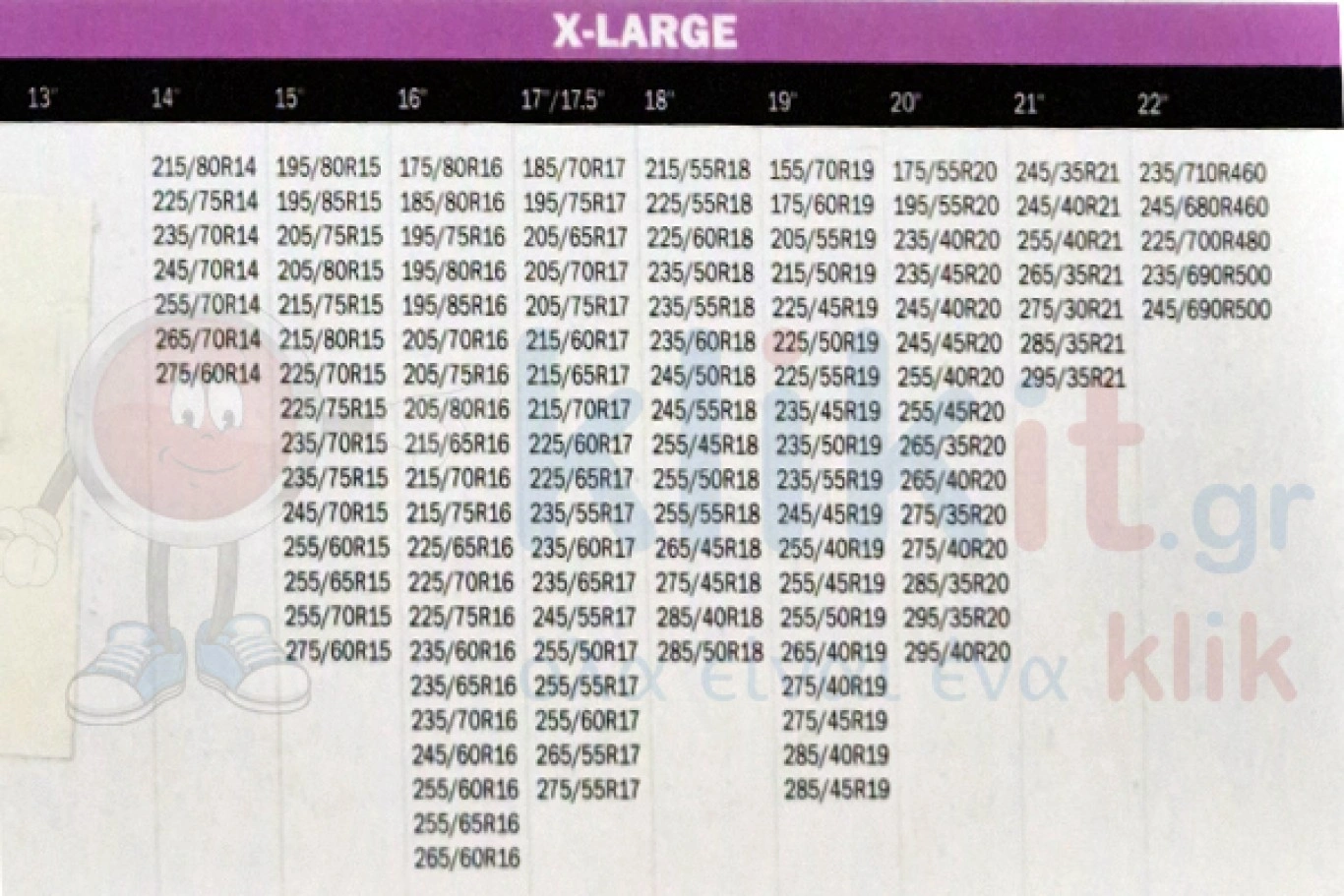 Τοποθετούνται μέσα σε 2 μόνο λεπτά με τη χρήση γαντιών που περιλαμβάνονται στην συσκευασία και χρησιμοποιούνται συνήθως σε αυτοκίνητα που διαθέτουν μεγάλες ζάντες αλλά και ελαστικά με χαμηλό προφίλ.