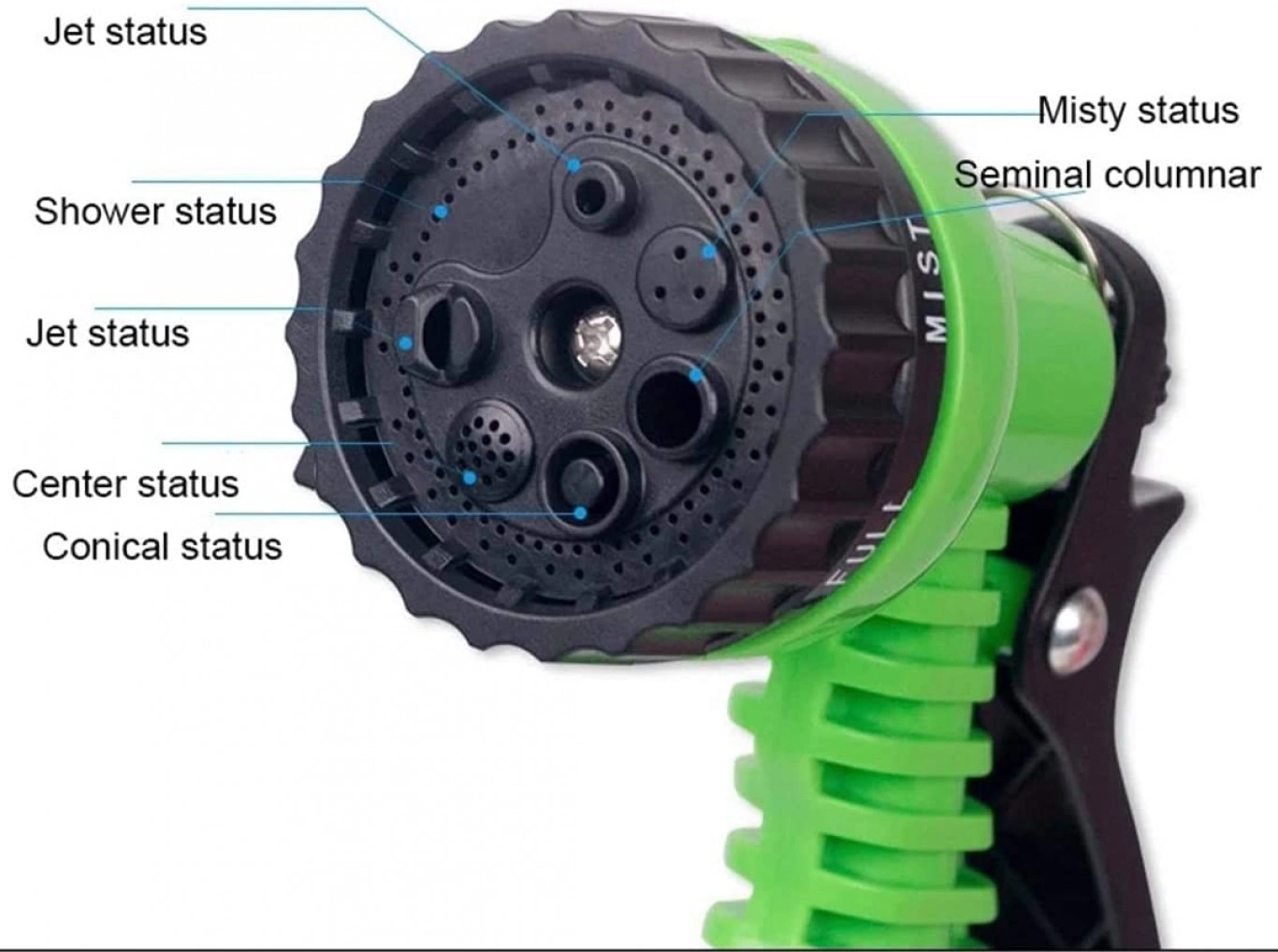 22.5m agic Hose Επεκτεινόμενο Λάστιχο Κήπου & Βεράντας με Πιστόλι & Πλαστικά Ρακόρ Πράσινο