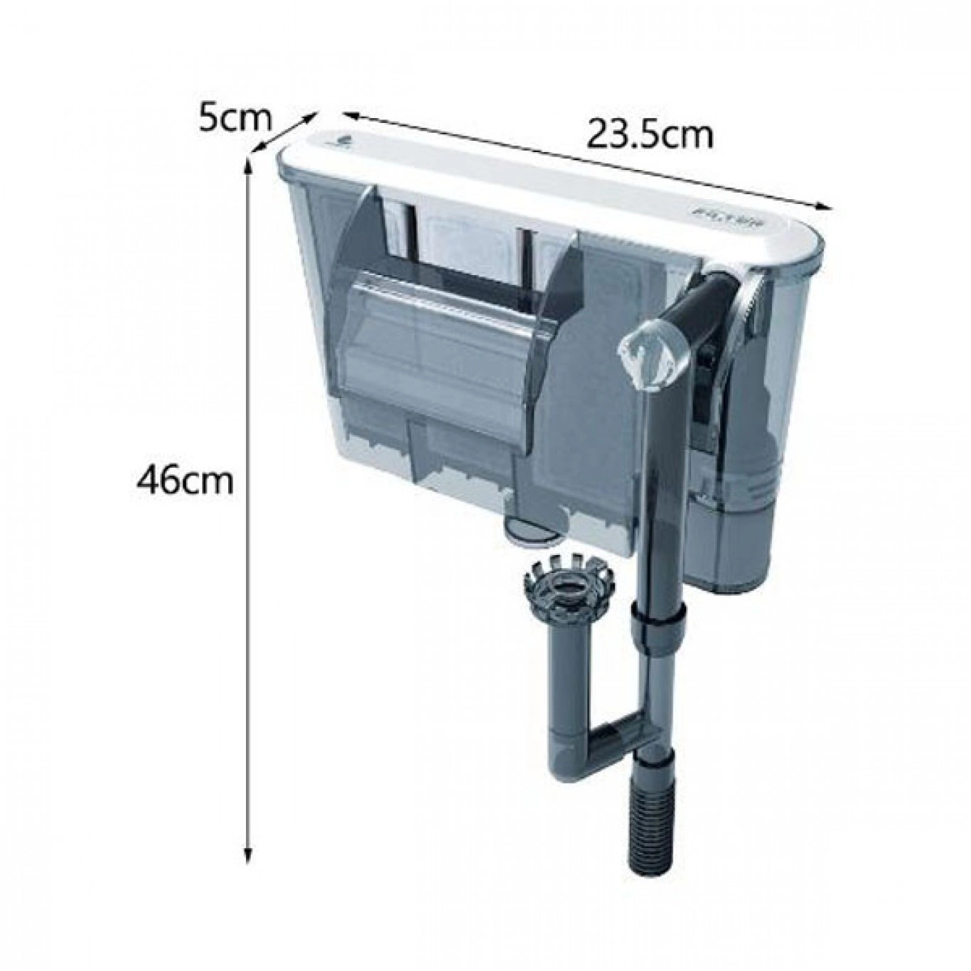 Αθόρυβο εξωτερικό φίλτρο που κρεμιέται στα τοιχώματα του ενυδρείου σας. Το φίλτρο με ενεργό άνθρακα και υαλοβάμβακα εγγυάται ολοκληρωμένη διήθηση, οξυγόνωση, καθαρισμό και αερισμό του νερού, διατηρώντας την υγιεινή στο ενυδρείο σας