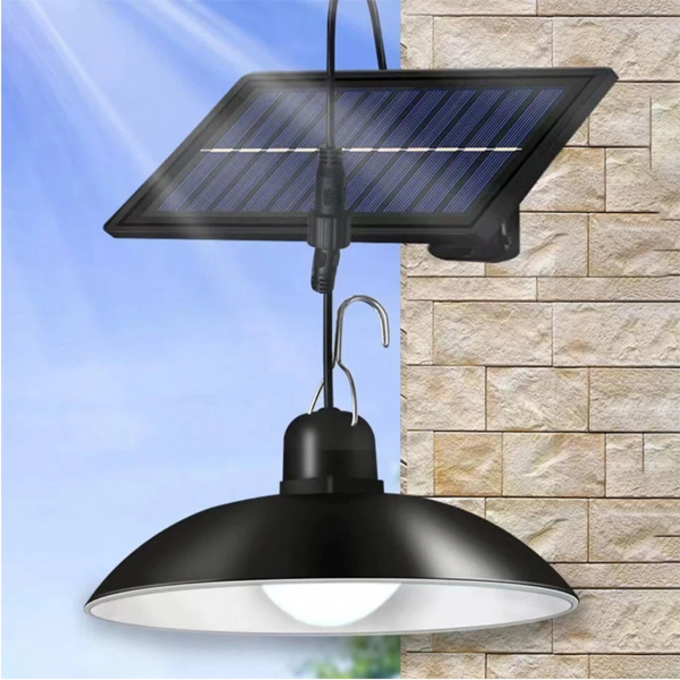 • 2 x Αδιάβροχα Κρεμαστά Ηλιακά Φωτιστικά Ψυχρού Φωτισμού με Ρυθμιζόμενη Φωτεινότητα