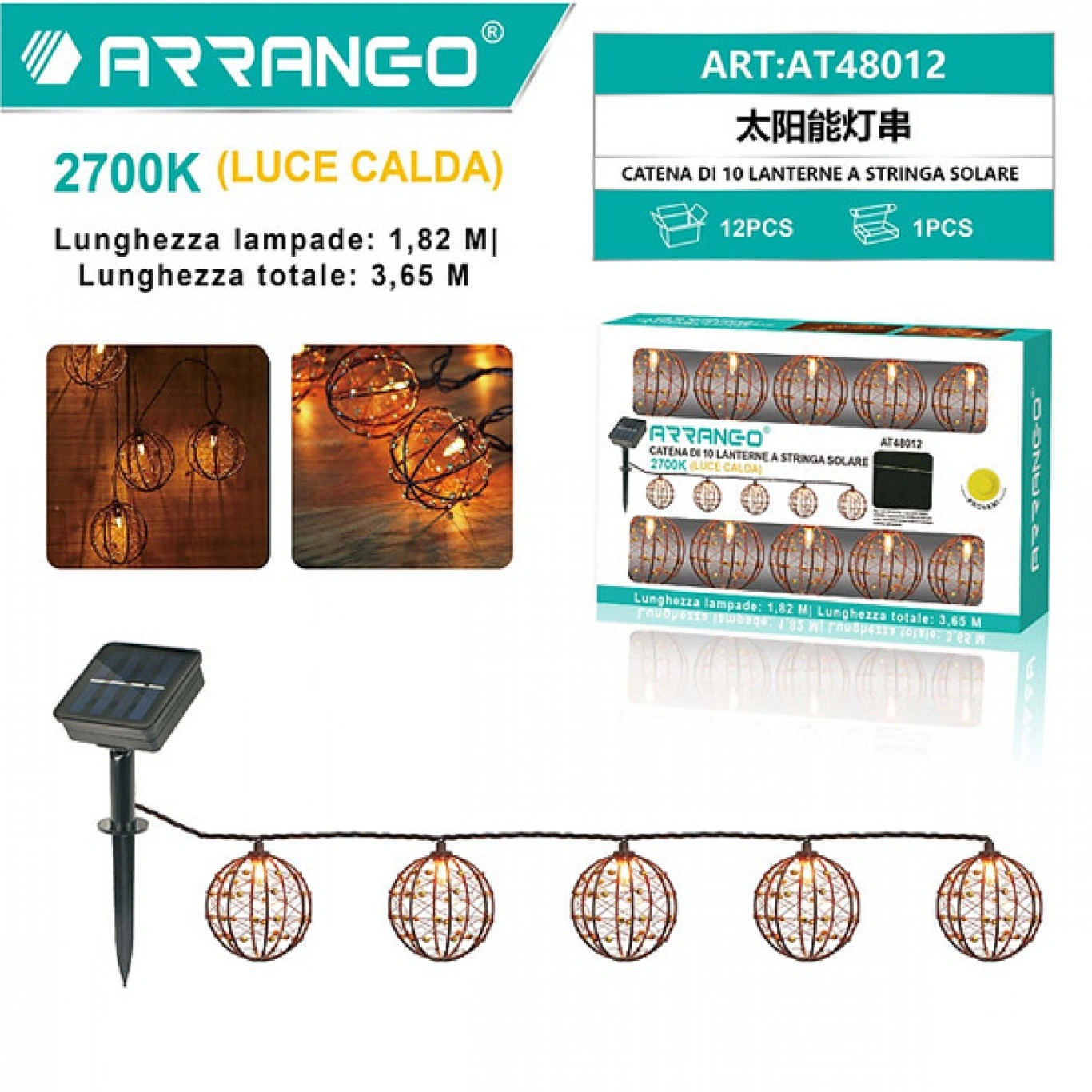 3,65m Ηλιακή Γιρλάντα Εξωτερικού Χώρου με 10 Κρεμαστές Λάμπες Θερμού Λευκού Φωτισμού AT48012