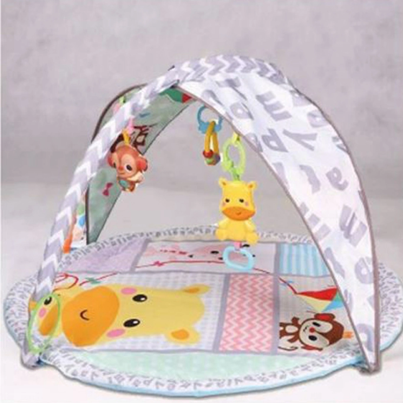 Σας φέραμε αυτό το ευρύχωρο γυμναστήριο – χαλάκι για να μπορείτε με ασφάλεια να αφήνεται το μικρό σας. Εύκολο στο στήσιμο χωρίς εργαλεία και πολύ πρακτικό