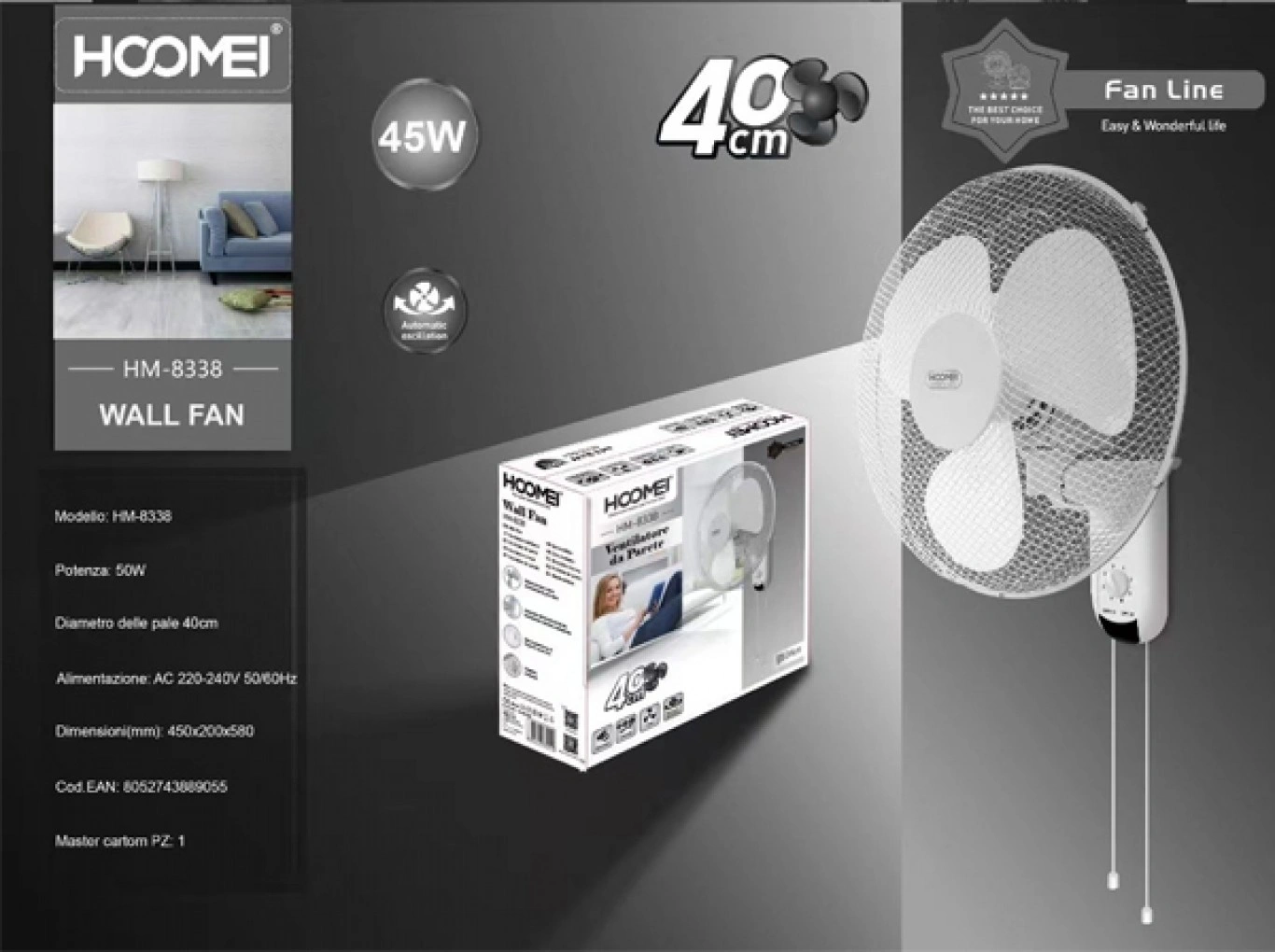 40cm Επιτοίχιος Ανεμιστήρας 50W ΗΟΟΜΕΙ HM-8338