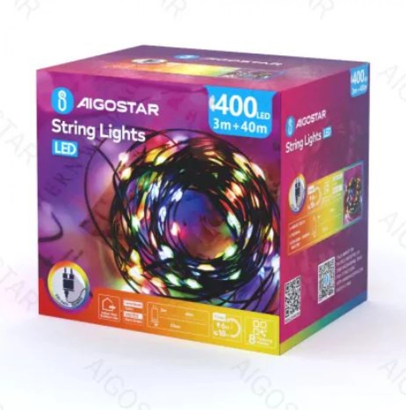 40m Χριστουγεννιάτικα Λαμπάκια Ρεύματος Γιρλάντα με Πράσινο Καλώδιο 40m Πολύχρωμου Φωτισμού και 8 Προγράμματα Λειτουργίας 30061