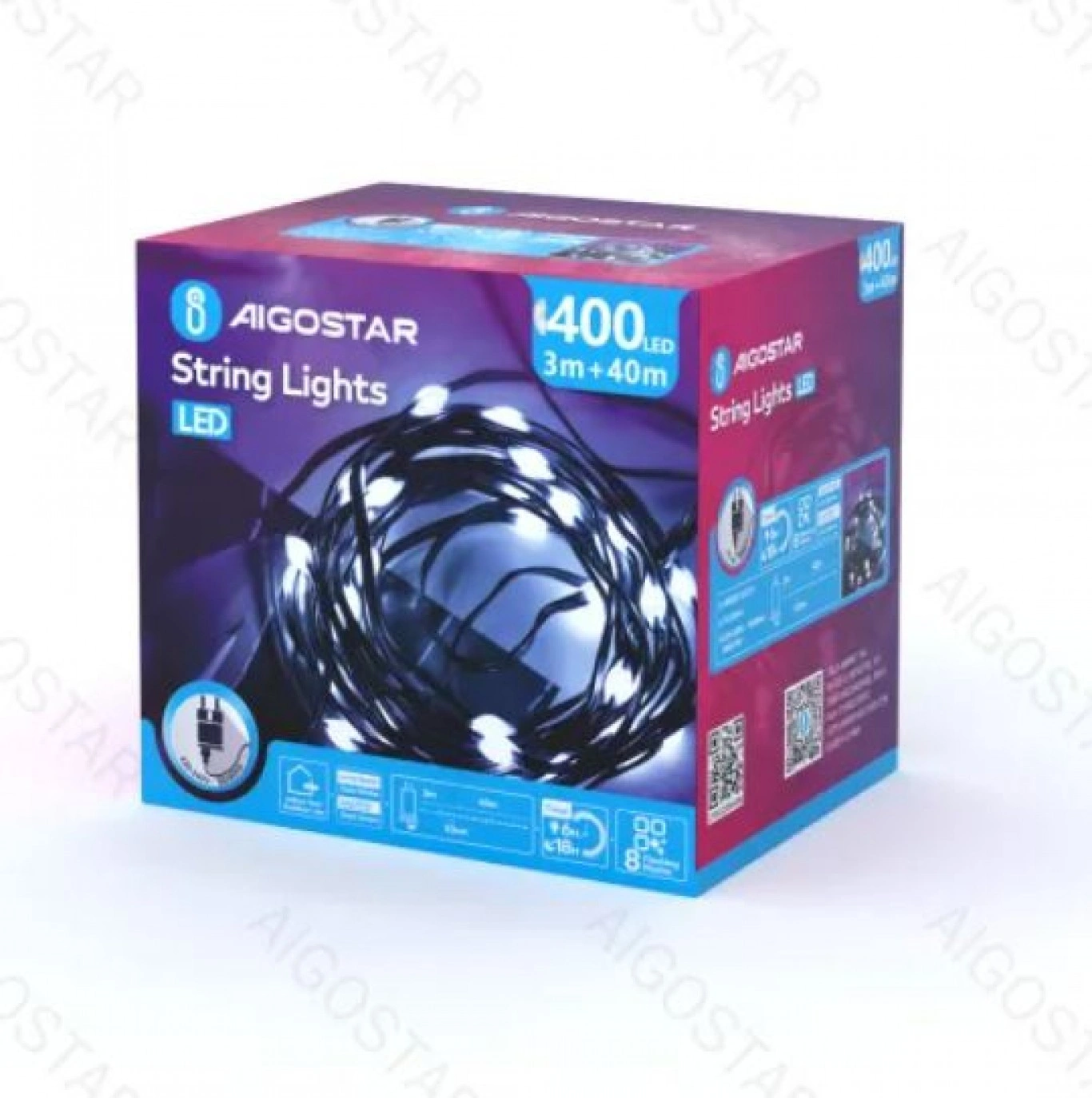 40m Χριστουγεννιάτικα Λαμπάκια Ρεύματος Γιρλάντα με Πράσινο Καλώδιο Λευκού Ψυχρού Φωτισμού και 8 Προγράμματα Λειτουργίας 30056