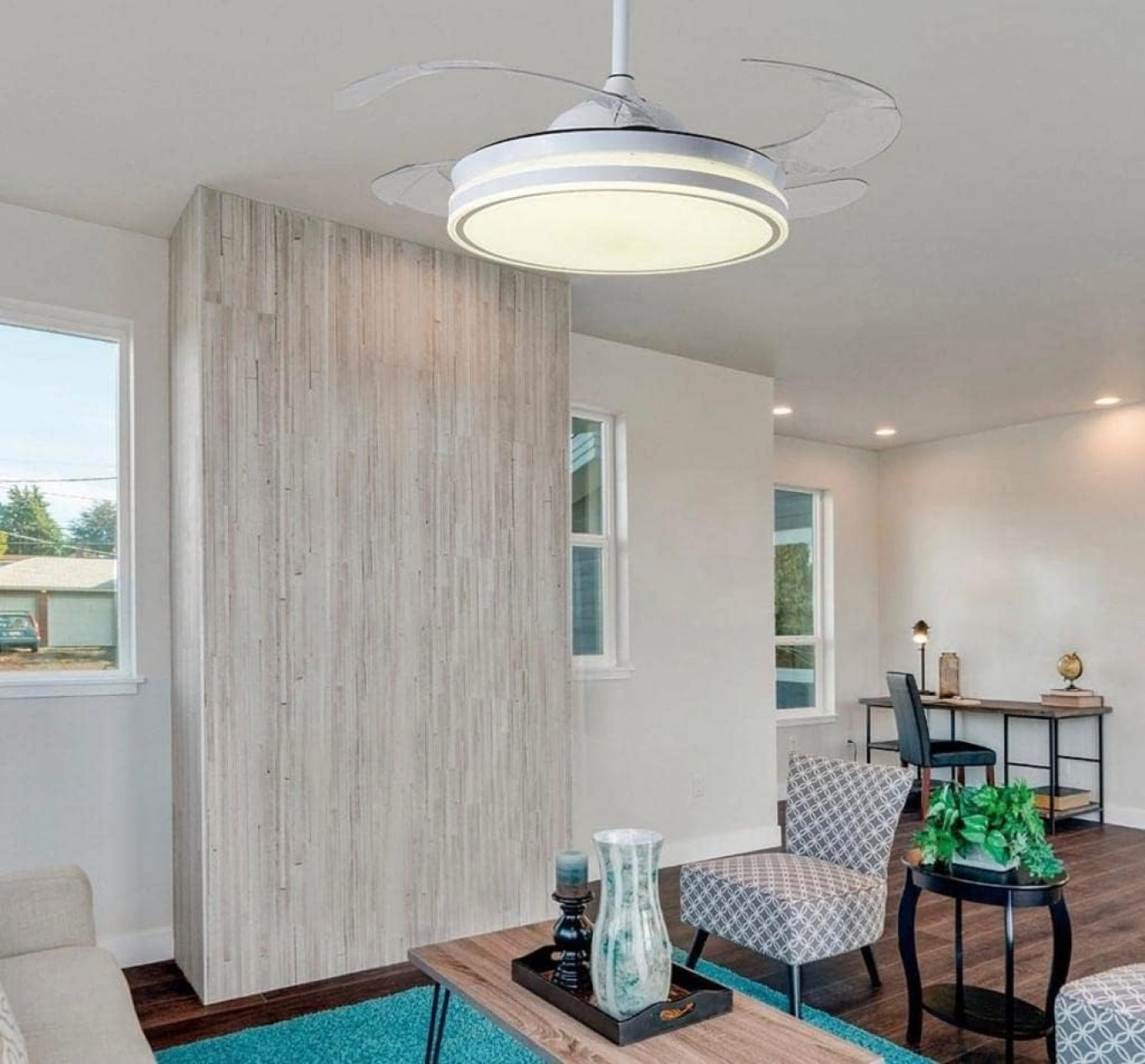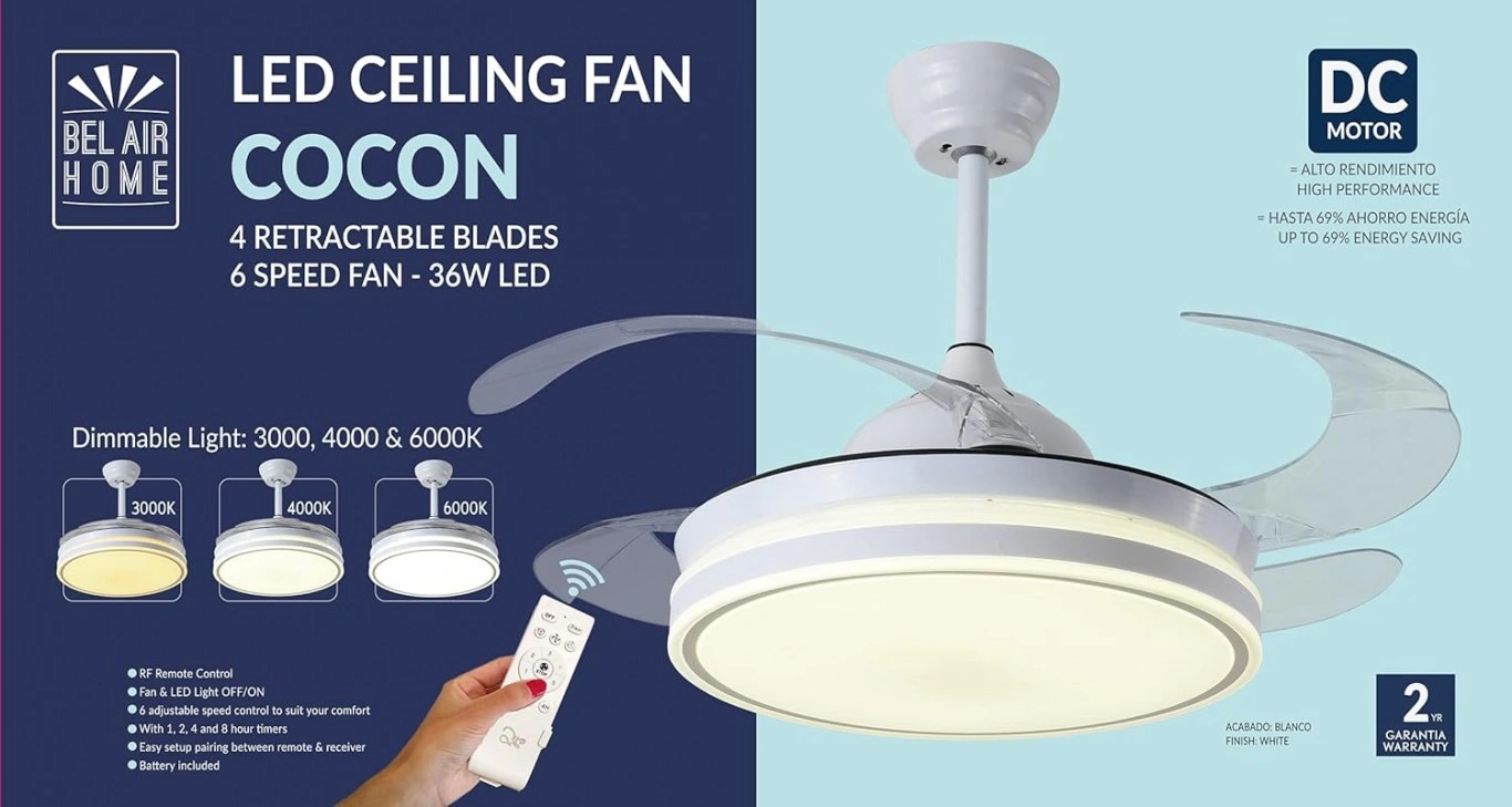 Ενας ανεμιστήρας που συνδυάζει τέλεια λειτουργικότητα και αισθητική με χειριστήριο και αθόρυβη λειτουργία. Ιδανικός για υπνοδωμάτια, σαλόνια αλλά και την βεράντα σας.✔️Οι αναδιπλούμενες διαφανείς φτερωτές του παραμένουν αόρατες όταν δεν χρησιμοποιείται ως ανεμιστήρας, διατηρώντας ένα καθαρό και κομψό φωτιστικό οροφής με LED.✔️Ο ενσωματωμένος φωτισμός τεχνολογίας LED παρέχει τρεις ρυθμίσεις θερμοκρασίας χρώματος (3000K, 4000K, 6000K), ώστε να διαμορφώνετε την κατάλληλη ατμόσφαιρα ανάλογα με τη στιγμή – από χαλαρό θερμό φως το βράδυ, μέχρι έντονο ψυχρό φως για καθαρή όραση.✔️Το ασύρματο χειριστήριο σάς επιτρέπει να ρυθμίζετε ταχύτητες, φως και χρονοδιακόπτη με άνεση.✔️Χάρη στον DC κινητήρα 6 ταχυτήτων, εξασφαλίζεται οικονομία στην κατανάλωση έως και 69% και σχεδόν αθόρυβη λειτουργία, ιδανική για υπνοδωμάτια, σαλόνια ή ακόμα και χώρους εργασίας.✔️Το αποτέλεσμα είναι ένα υβριδικό σύστημα φωτισμού και δροσισμού, το οποίο προσαρμόζεται στις ανάγκες του χώρου σας, διατηρώντας καθαρές γραμμές και μοντέρνο στυλ.