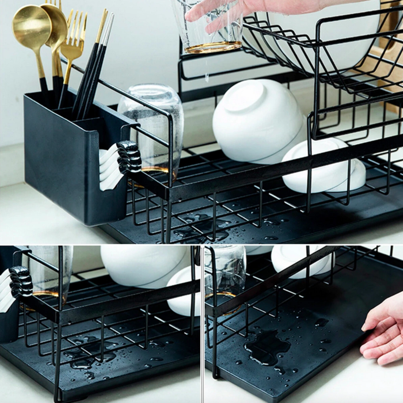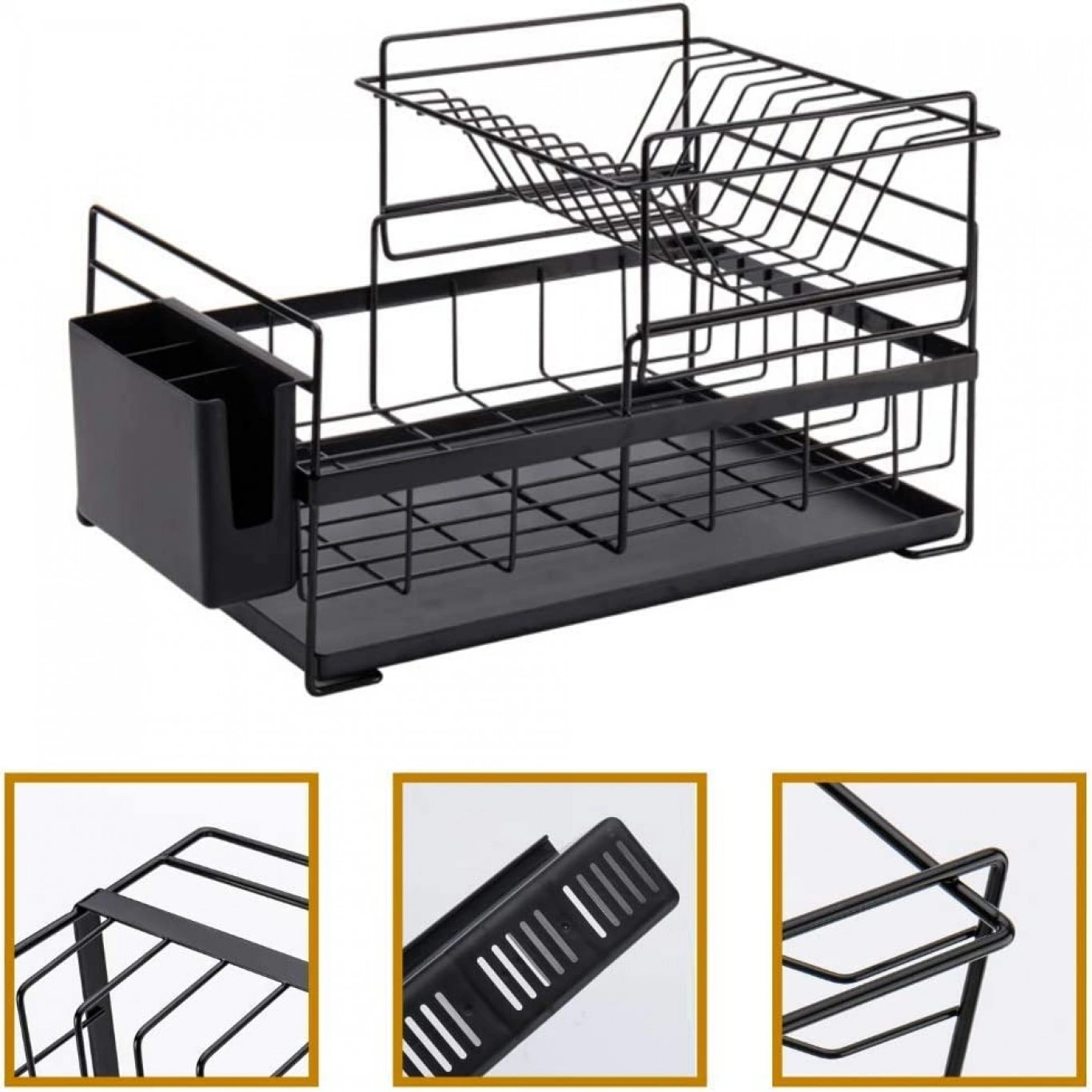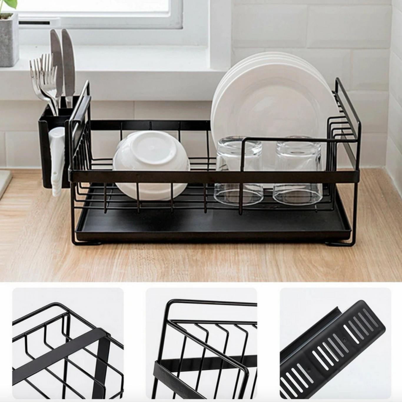 Ένας στεγνωτήρας για τον νεροχύτη σας για την οργάνωση και διατήρηση ενός καθαρού και τακτικού χώρου στην κουζίνα σας. ✔️ Οργανώνει και διαχωρίζει εύκολα πιάτα, μαγειρικά σκεύη, μαχαιροπίρουνα και άλλα εργαλεία κουζίνας.✔️ Διαθέτει αποσπώμενες βάσεις : μία βάση για πιάτα και μία θήκη για μαχαιροπήρουνα.✔️ Βοηθάει στην καλύτερη ροή αέρα και αποστράγγισης του νερού.✔️ Κατάλληλη για διάφορα μεγέθη πιάτων και ποτηριών.