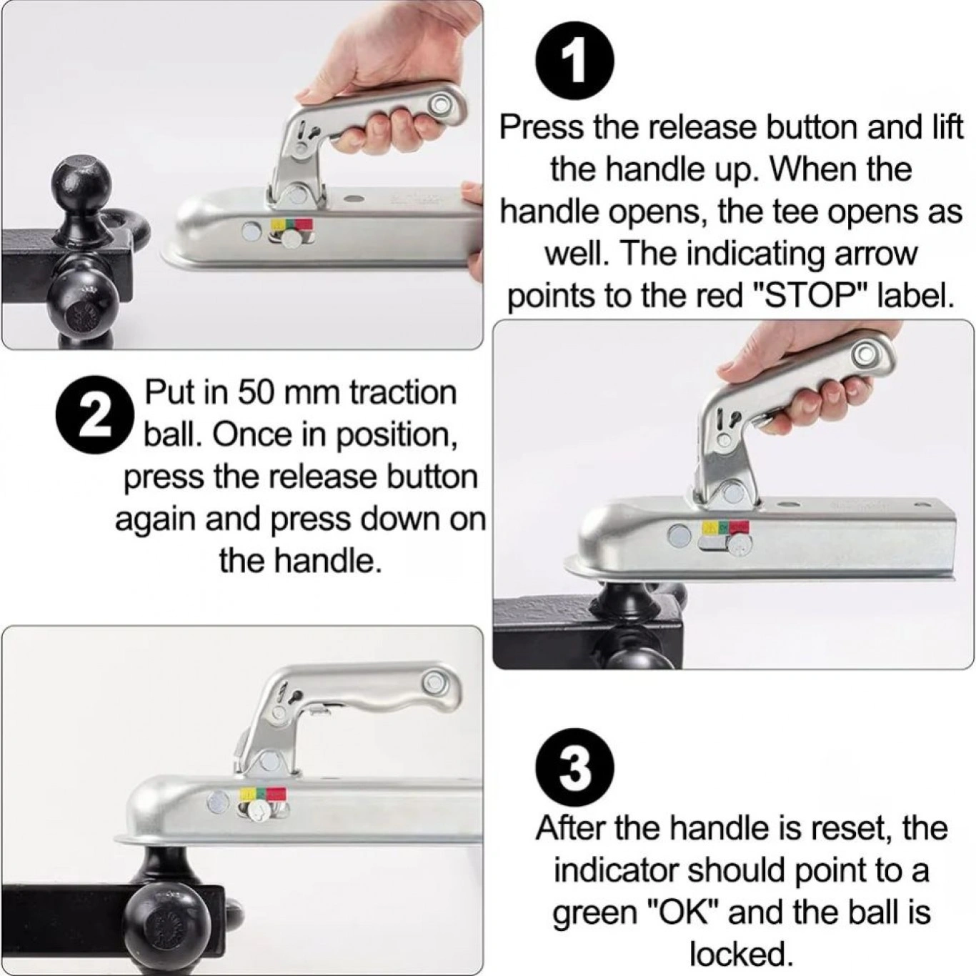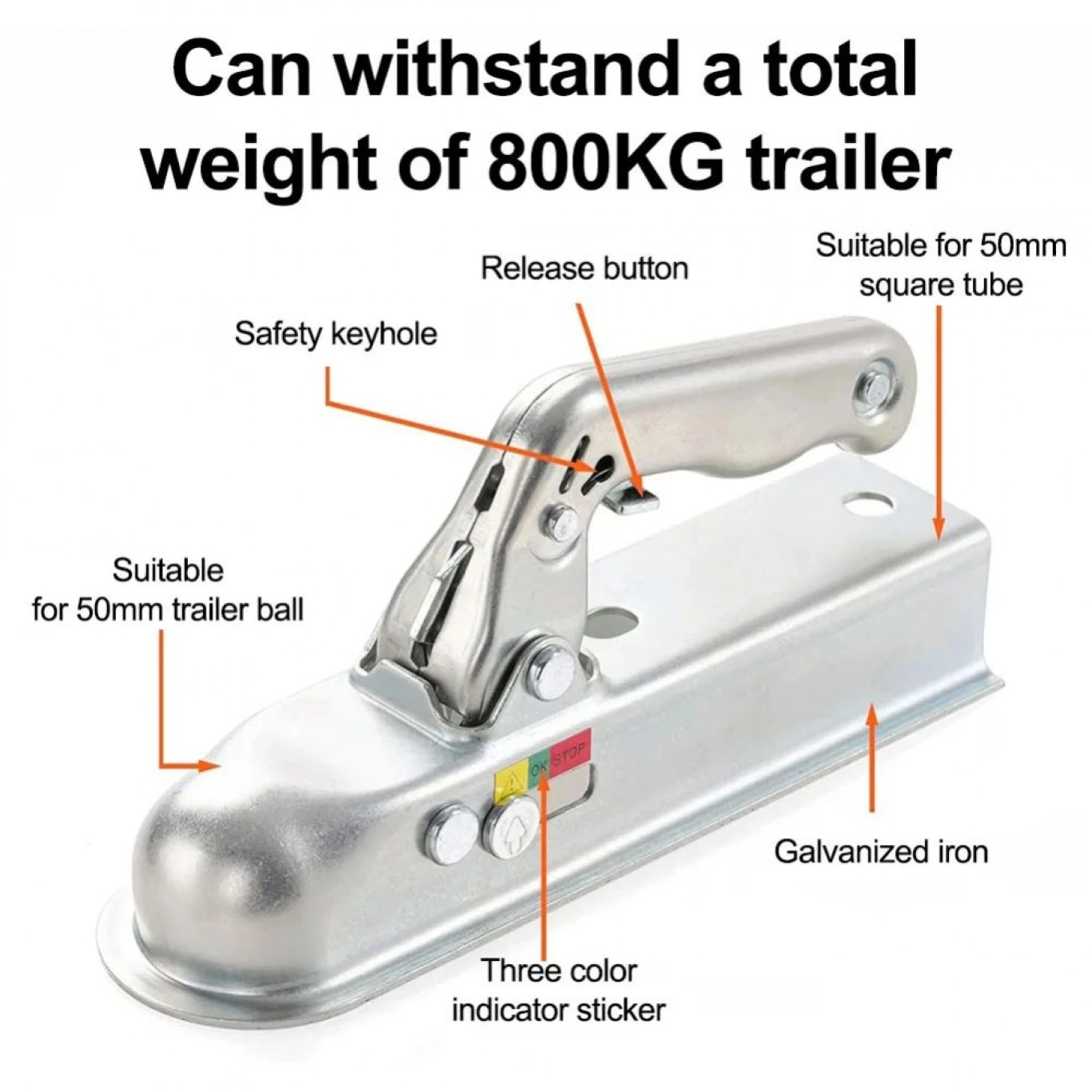 Χούφτα κοτσαδόρου στρογγυλή με σκανδάλη. Κατάλληλη για κοτσαδόρους 50mm. Πλάτος κοιλοδοκού τοποθέτησης 50mm.