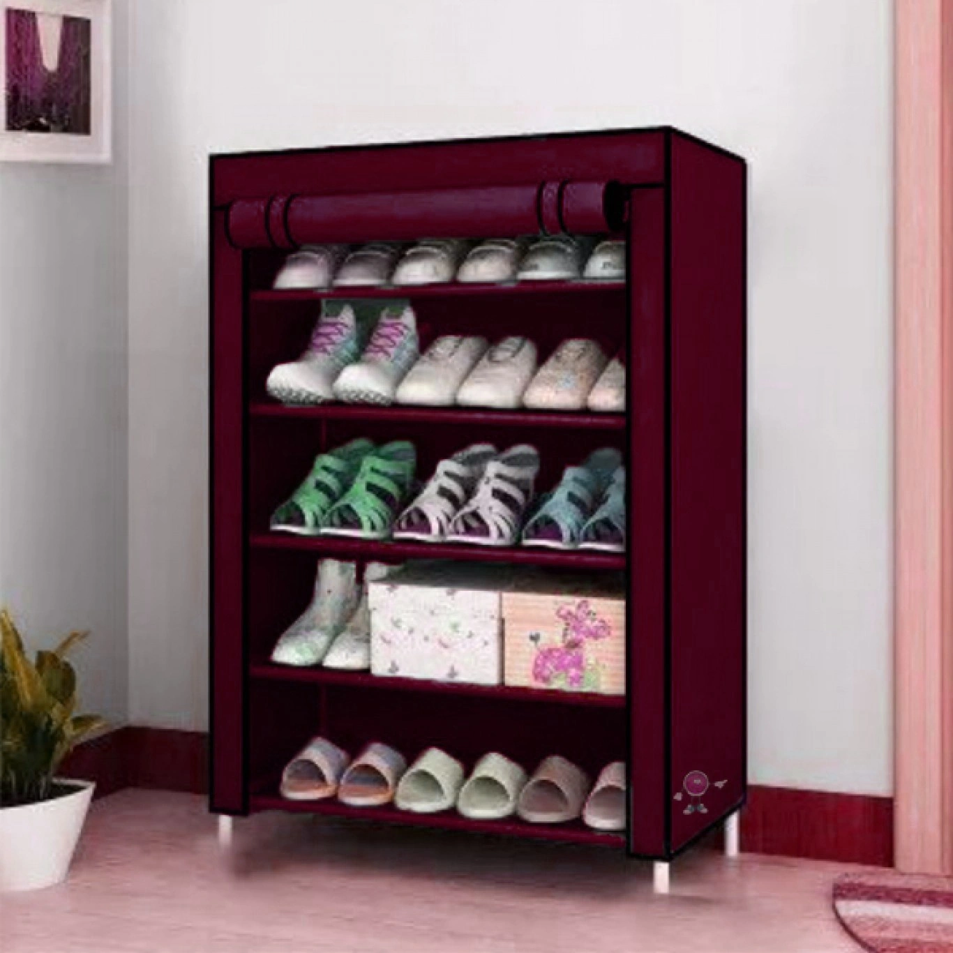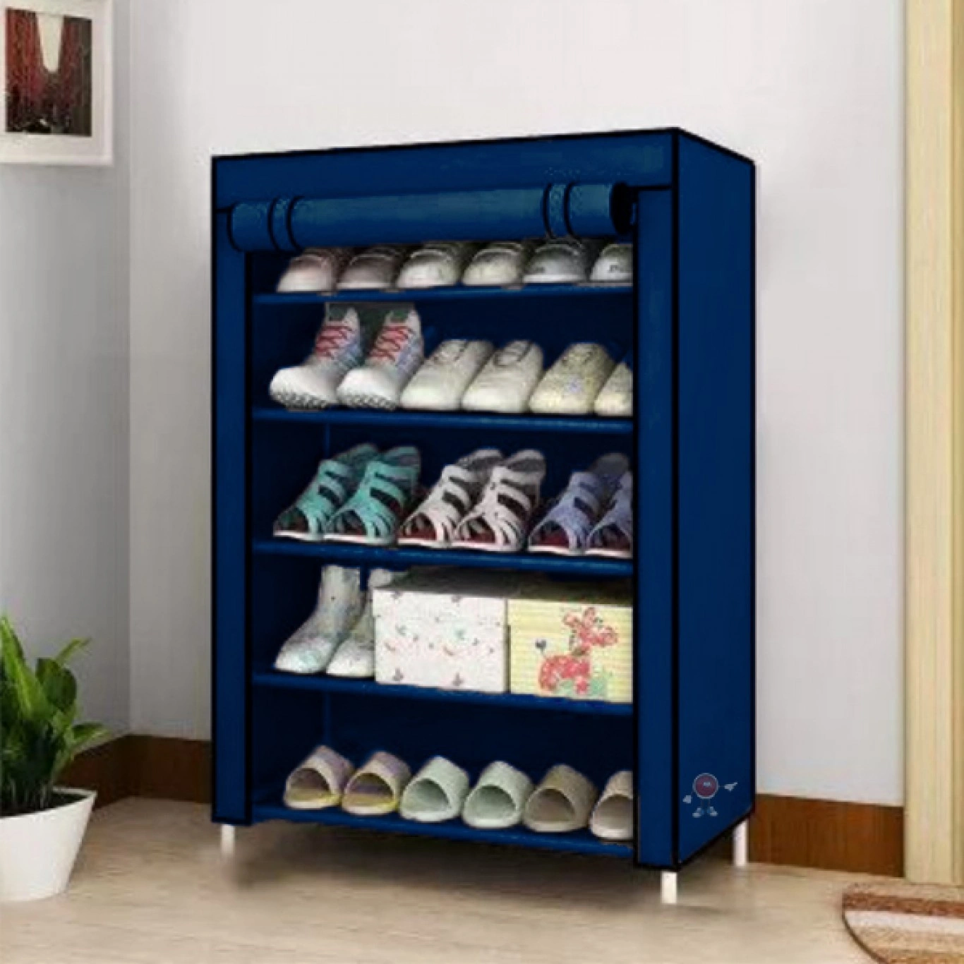 Φορητή υφασμάτινη παπουτσοθήκη με 5 ράφια και μεταλλικό σκελετό, σχεδιασμένη να προστατεύει τα ρούχα και τα παπούτσια σας από τη σκόνη και τις βρομιές. Είναι ιδανική για το σπίτι, το εξοχικό ή την αποθήκη. Διαθέτει ράφια που χωρούν ρούχα και λευκά είδη.