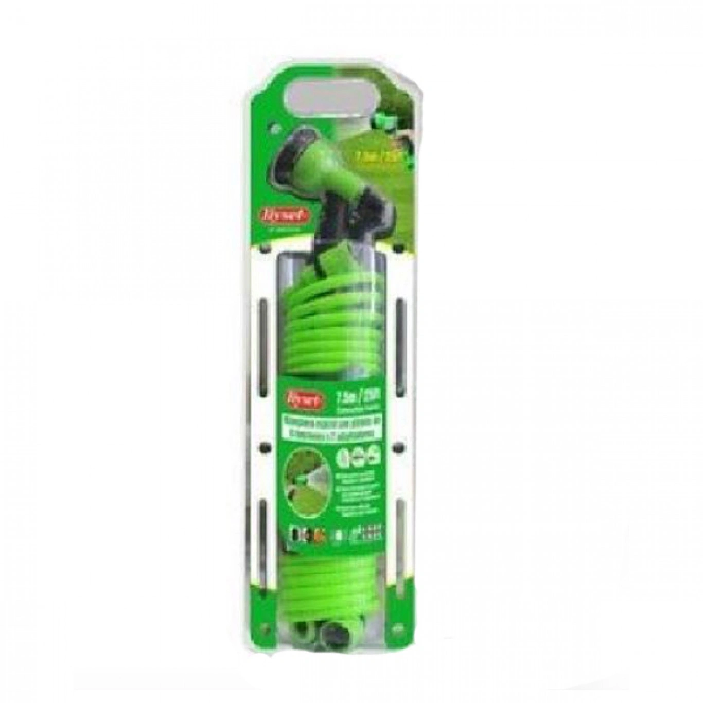 Λάστιχο κήπου – βεράντας σπιράλ με πιστόλι, ανθεκτικό σε πολύ μεγάλες πιέσεις. Είναι κατασκευασμένο από ανθεκτικό υλικό δεν τρυπάει, δεν διπλώνει, δεν θα σας προβληματίσει στο μάζεμα διότι είναι σπειροειδές. Κουμπώνει σε οποιαδήποτε βρύση αφού διαθέτει ταχυσύνδεσμο. Στην άλλη άκρη κουμπώνει το πιστόλι και σας δίνει την δυνατότητα επιλογής μεταξύ 8 διαφορετικών ρυθμίσεων ροής (mist-stream-vertical-flat-full-shower-center).