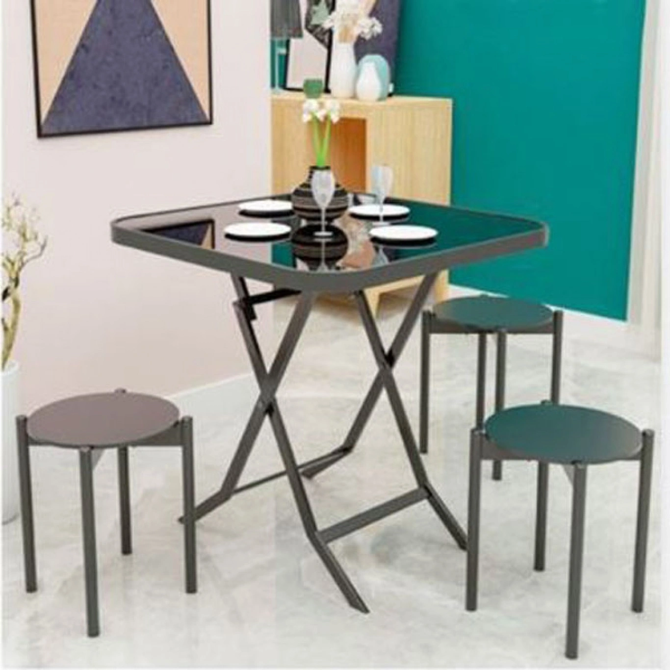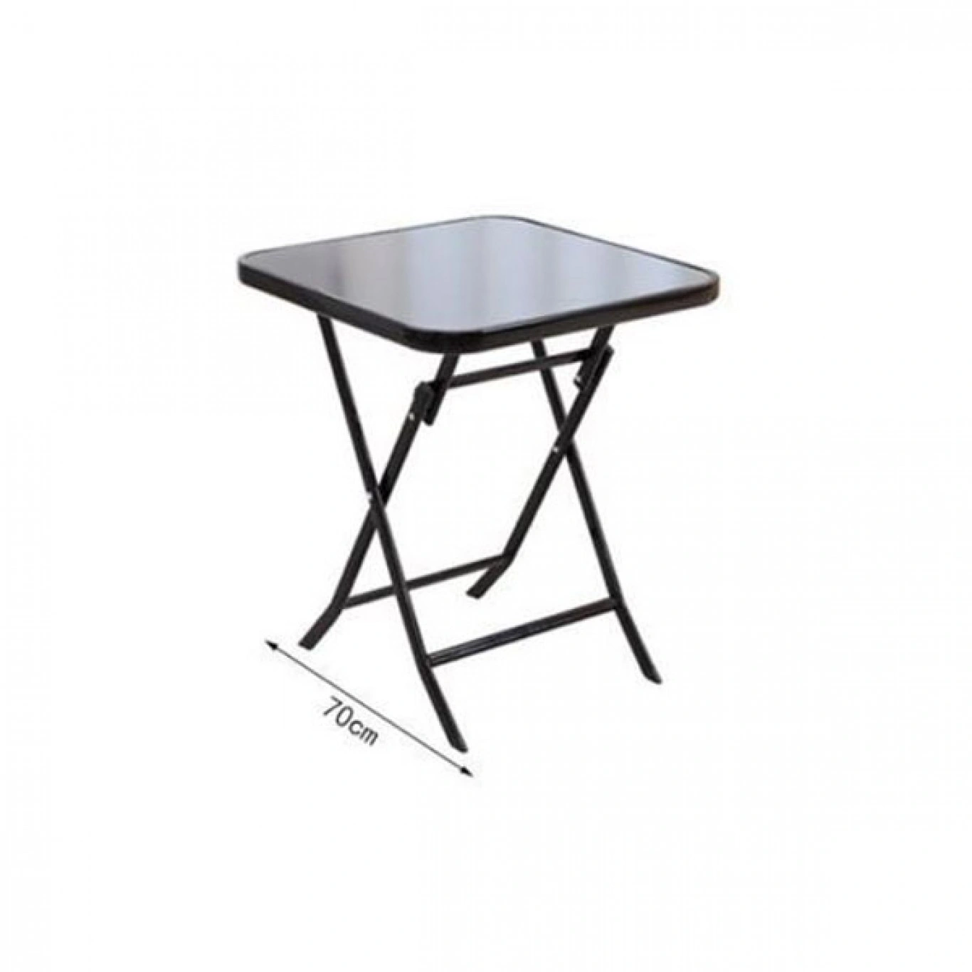70x70x75cm Μαύρο Tετράγωνο Τραπέζι Πτυσσόμενο με Σκελετό Αλουμινίου και Γυάλινη Επιφάνεια