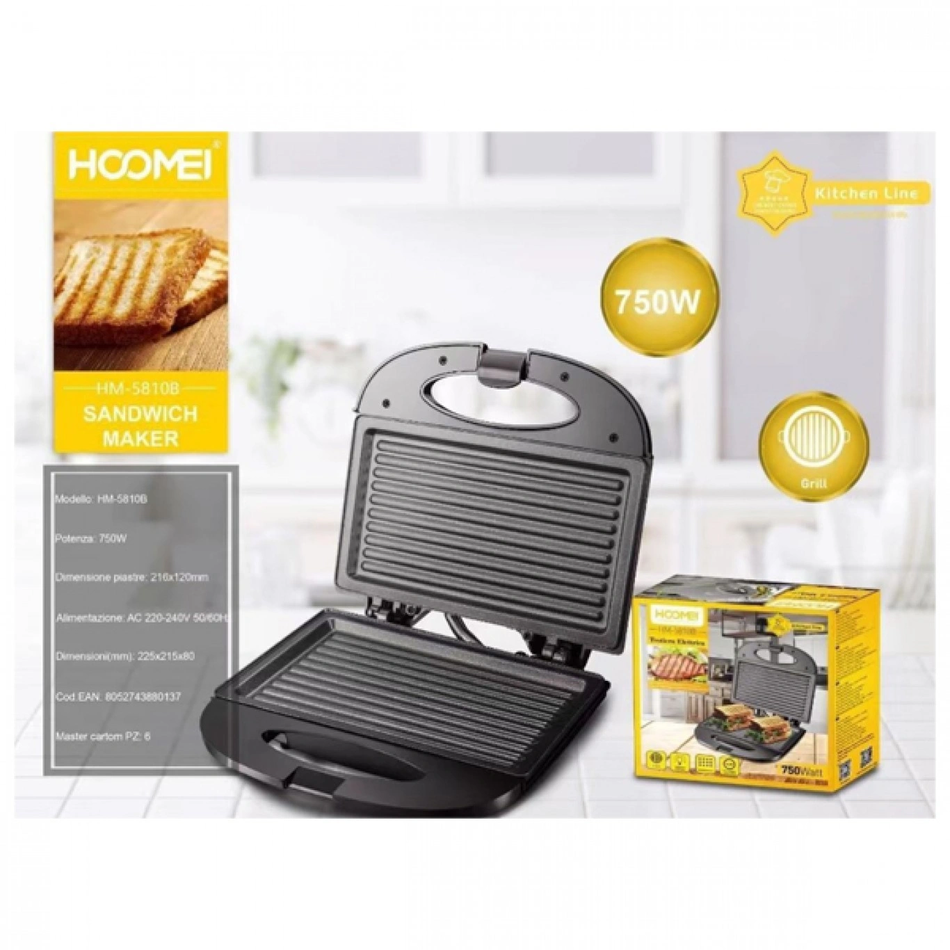 750W Ηλεκτρική Τοστιέρα Με Αντικολλητικές Πλάκες Για 2 Τοστ Hoomei HΜ-5810