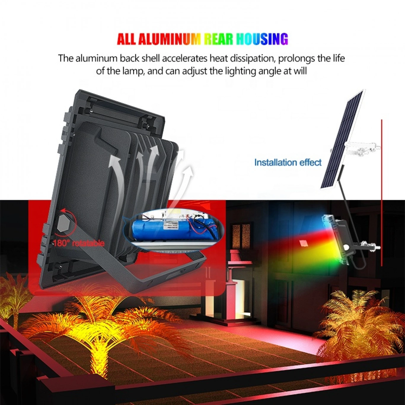 800W Αδιάβροχος Επαναφορτιζόμενος Ηλιακός Προβολέας Αλουμινίου 95 LED RGB με Τηλεχειρισμό & Χρονοδιακόπτη MJ-AW800C