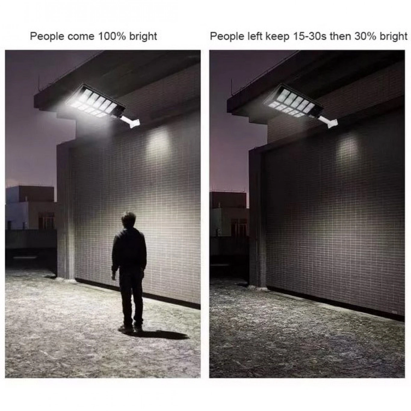 Ηλιακό φωτιστικό δρόμου, που συγκεντρώνει και αποθηκεύει ηλιακή ενέργεια για τη λειτουργία του. Διαθέτει ανιχνευτή κίνησης για να ενεργοποιείται όταν εντοπίσει κίνηση εντός της εμβέλειάς του, αλλά και κοντρόλ ώστε να το χειρίζεστε από απόσταση.