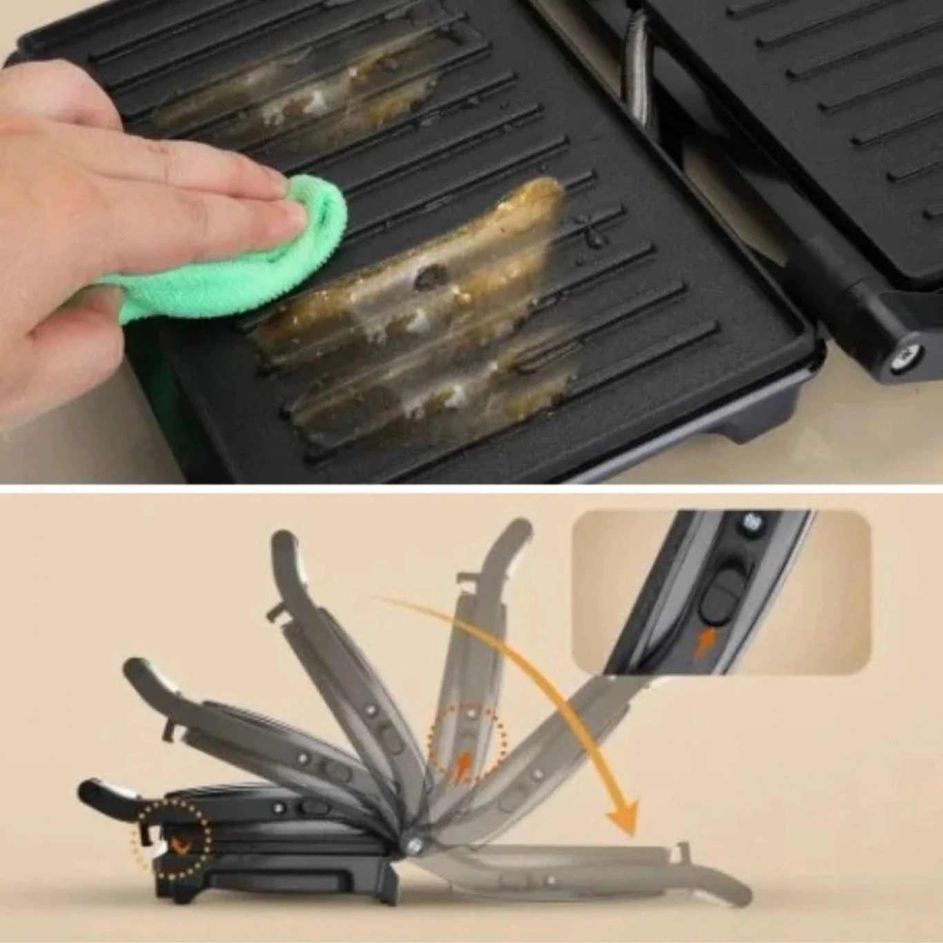 ✔️Άνοιγμα 180°: Λειτουργία τοστιέρας και επιτραπέζιας ψηστιέρας.