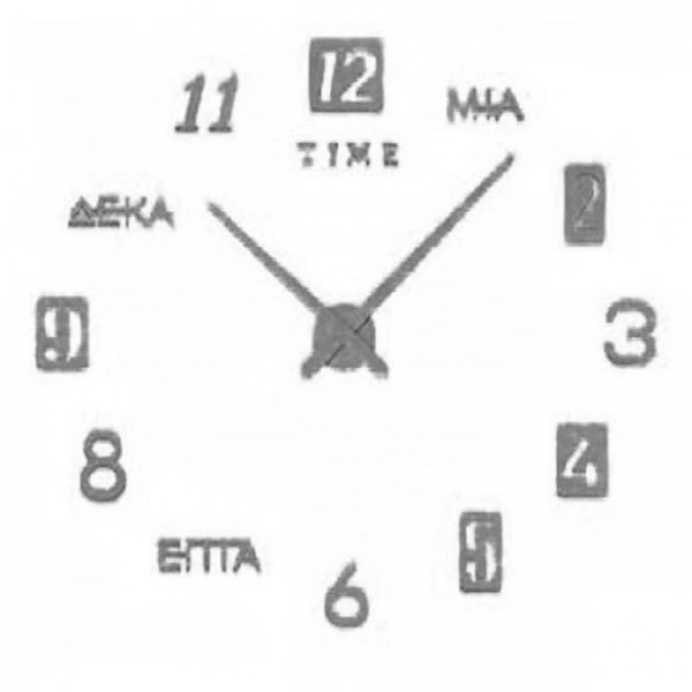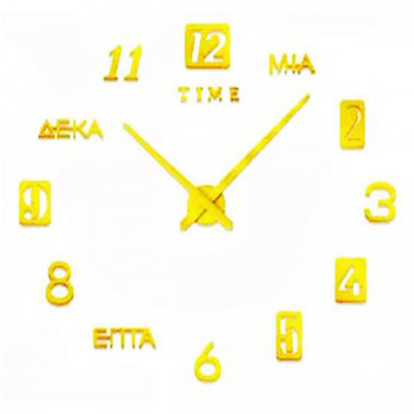 90×90 cm Αυτοκόλλητο Ρολόι Τοίχου Ακρυλικό DIY με Ελληνικούς Χαρακτήρες και Μηχανισμό Quartz