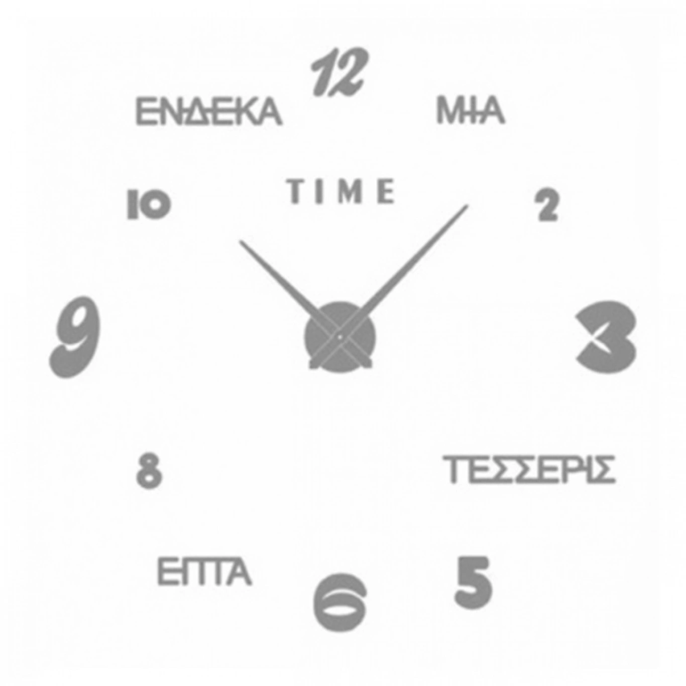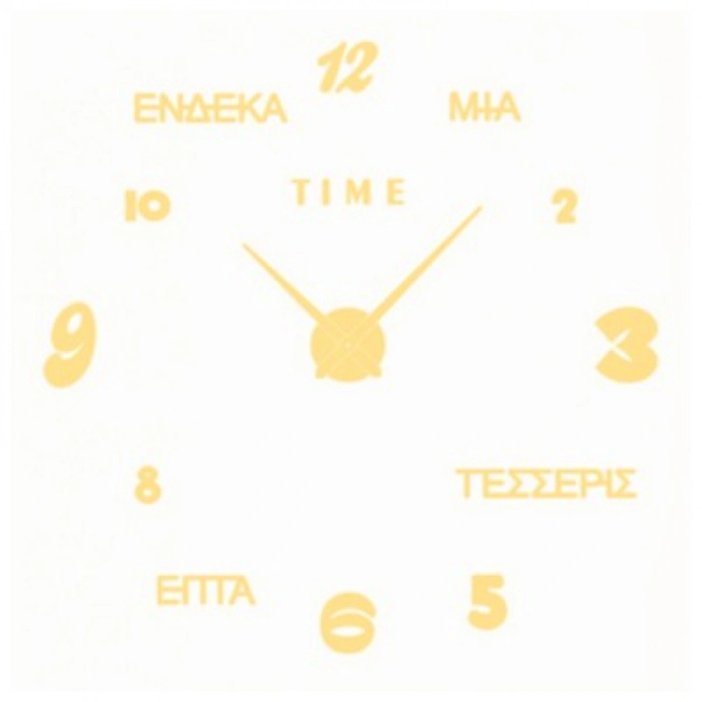 90x90cm Αυτοκόλλητο Ρολόι Τοίχου Ακρυλικό DIY με Ελληνικές Λέξεις και Μηχανισμό Quartz