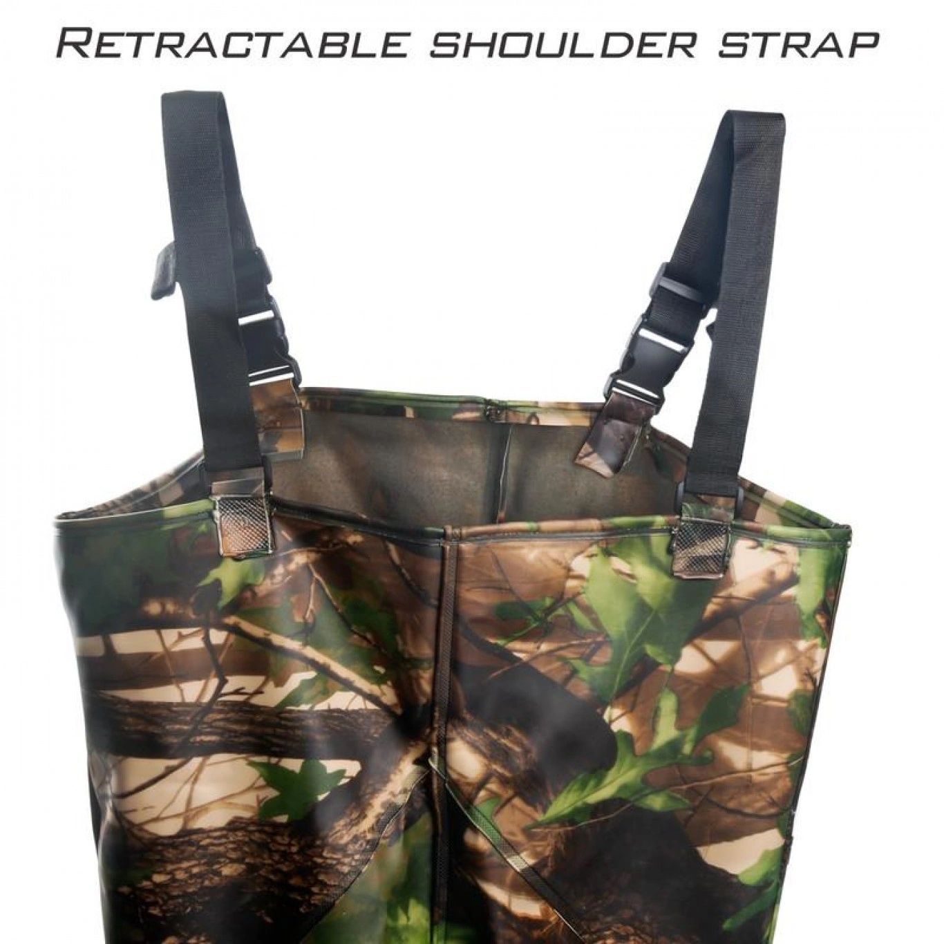 Ευρύχωρες μπότες συγκολλημένες μέχρι το στήθος, με αυξομειούμενες τιράντες εφαρμογής, για πολλές ώρες χρήσης μέσα στο νερό.