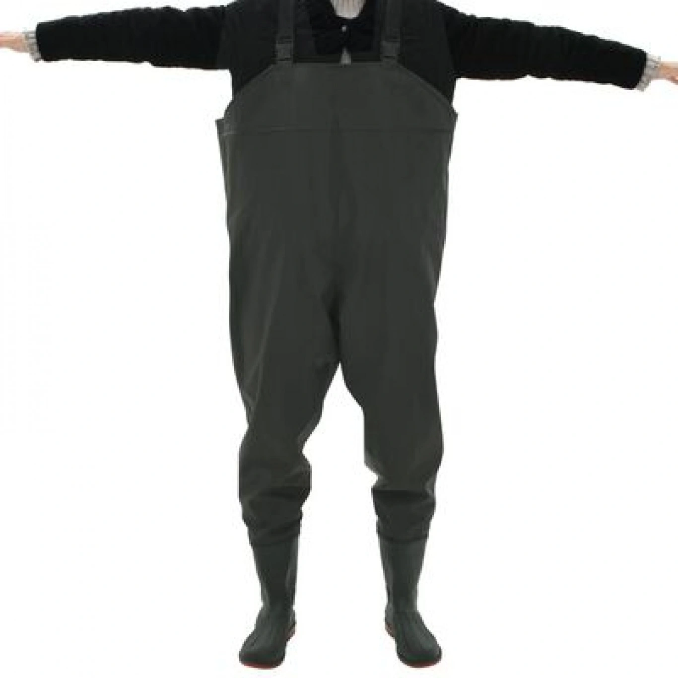 Αδιάβροχες PVC Αντιολισθητικές Γαλότσες Μπότες Στήθους Ψαρέματος Χακί με Παντελόνι
