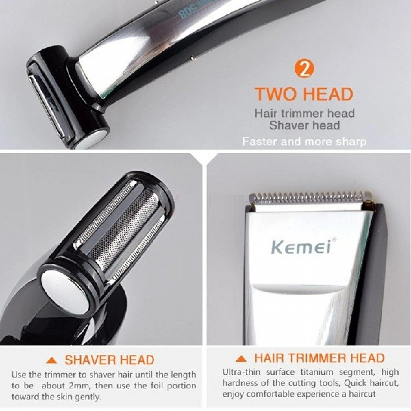 Αδιάβροχη Επαναφορτιζόμενη Κουρευτική και Ξυριστική Μηχανή 2 σε 1 – Kemei KM-508