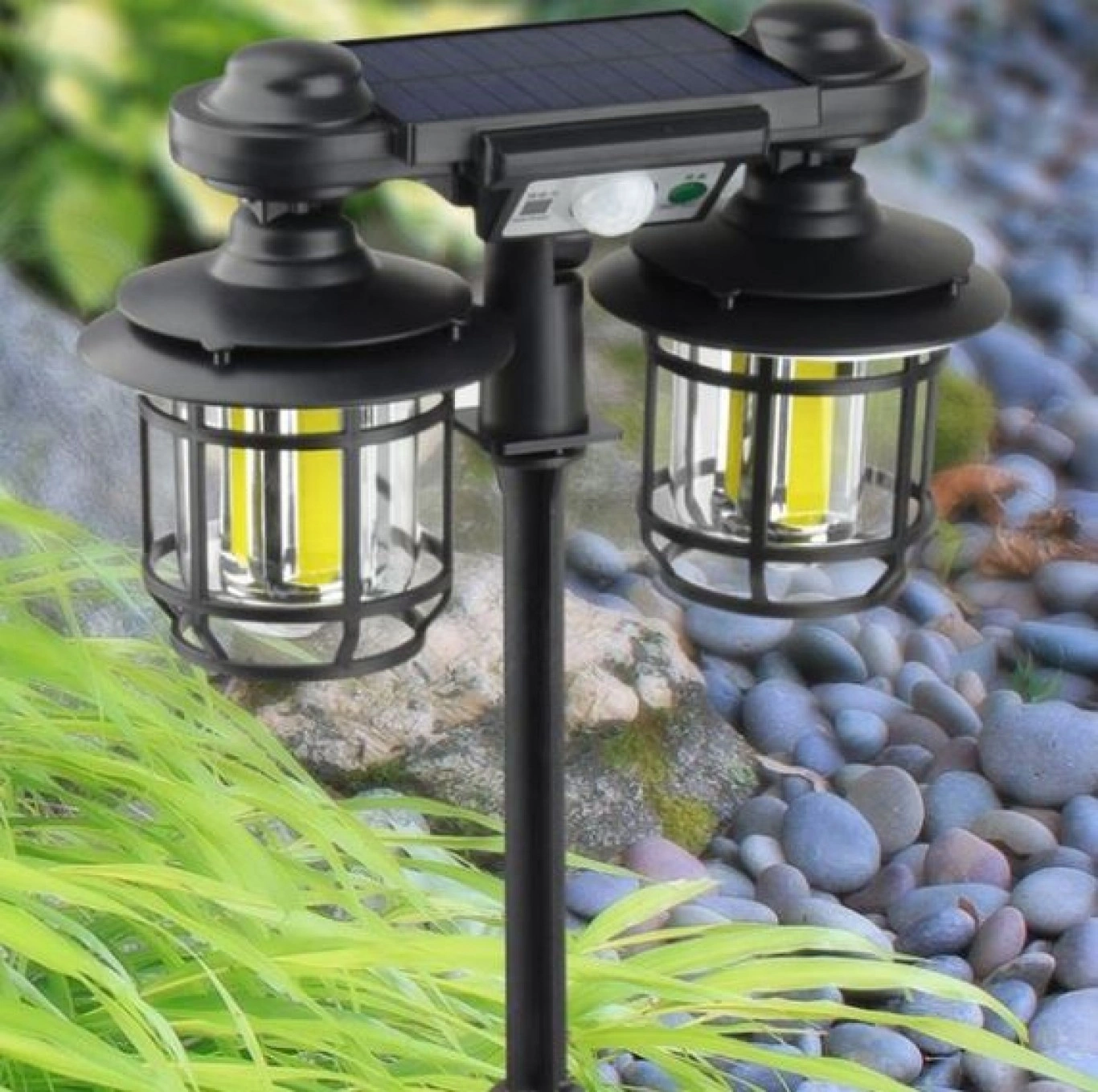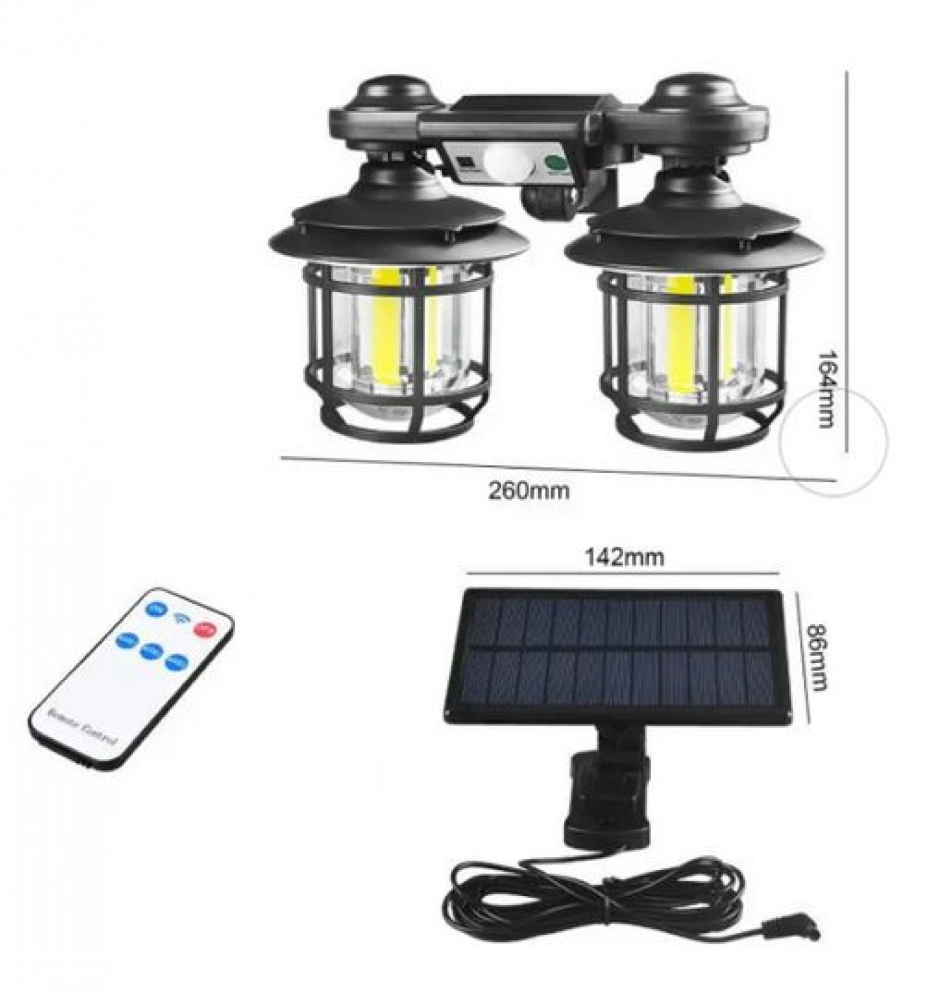 Αδιάβροχο Διπλό Ρετρό Καρφωτό και Επιτοίχιο Ηλιακό Φωτιστικό με Ανιχνευτή Κίνησης JD-2217 – ΟΕΜ