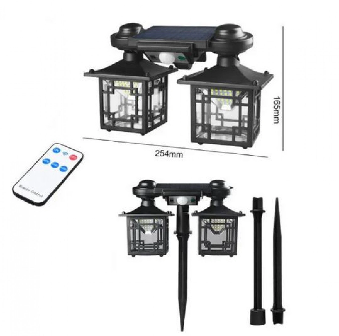 Αδιάβροχο Διπλό Ρετρό Καρφωτό και Επιτοίχιο Ηλιακό Φωτιστικό με Ανιχνευτή Κίνησης JD-2218 – ΟΕΜ