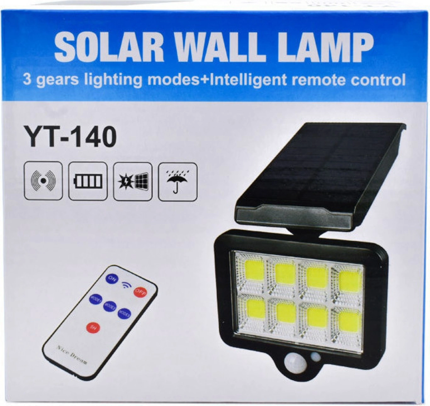 Αδιάβροχο Ηλιακό Φωτιστικό 140 LED COB με Ανιχνευτή Κίνησης OEM YT-140 – Μαύρο