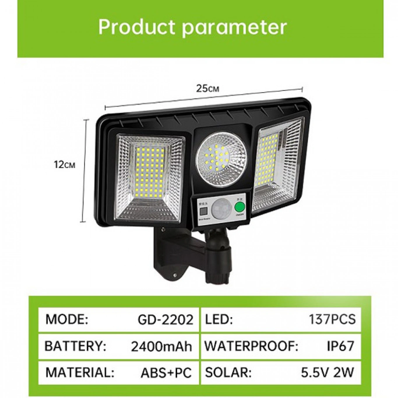 Αδιάβροχο IP67 Ηλιακό Φωτιστικό Τοίχου GD-2202 με Τηλεχειριστήριο σε Μαύρο Χρώμα – GDPLUS Solar Flood Light