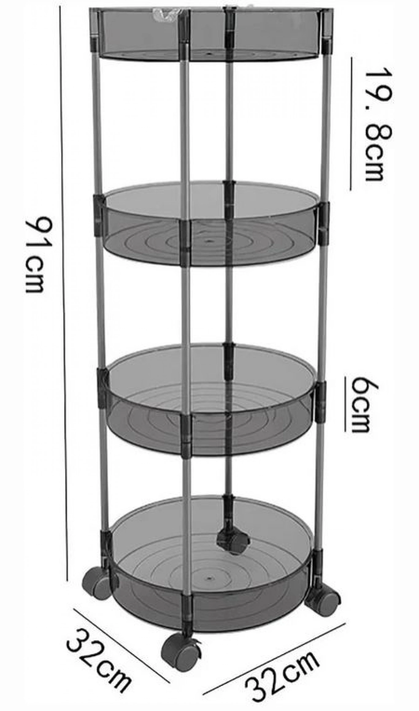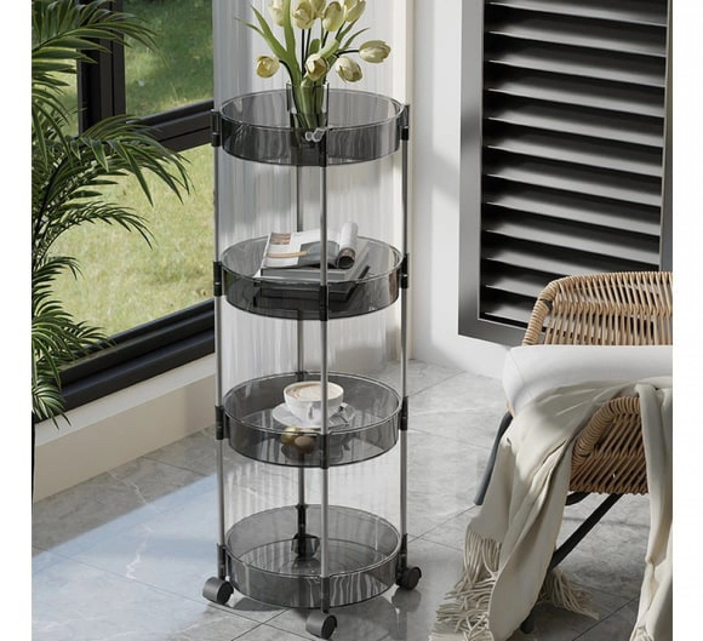 Ακρυλική Τροχήλατη – Ραφιέρα – Καρότσι – Βάση Οργάνωσης 4 Επιπέδων με Ροδάκια, Τρόλεϊ Οργάνωσης – Διακόσμησης 32x32x91εκ