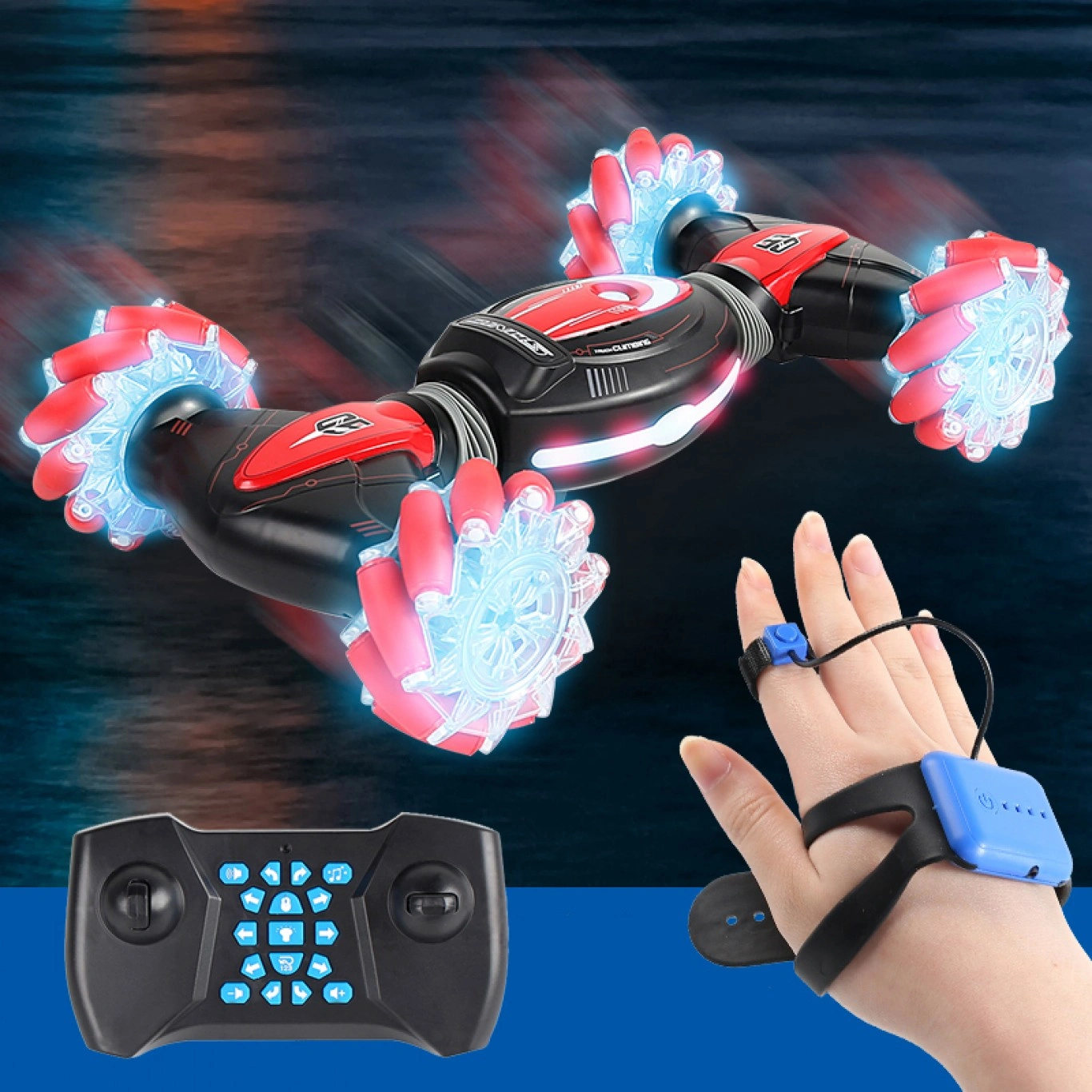 ✔️ Είτε με το χέρι σας με το ειδικό χειριστήριο χεριού. Το αυτοκίνητο κινείται προς τα εμπρός, προς τα πίσω ή στα πλάγια και να περιστραφεί 360° ανάλογα με την τοποθέτηση του χεριού σας χάρη στον αισθητήρα κίνησης που είναι ενσωματωμένος στο βραχιόλι!
