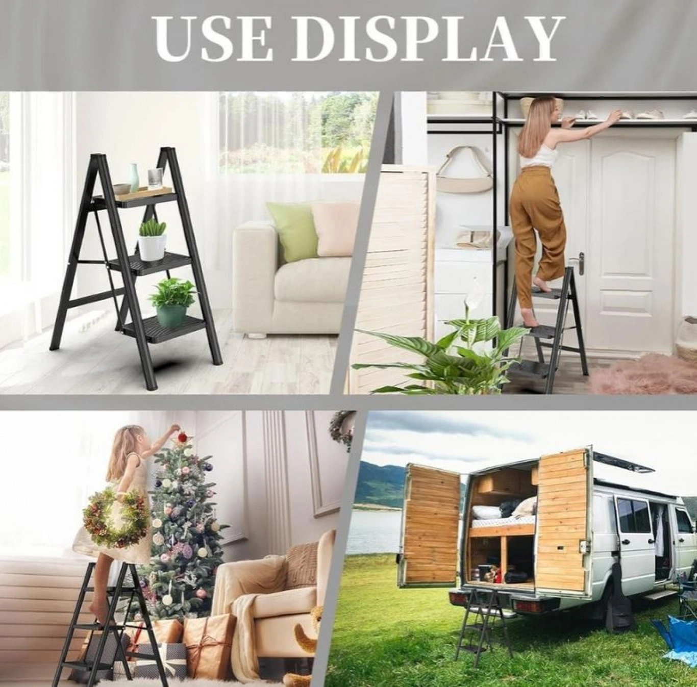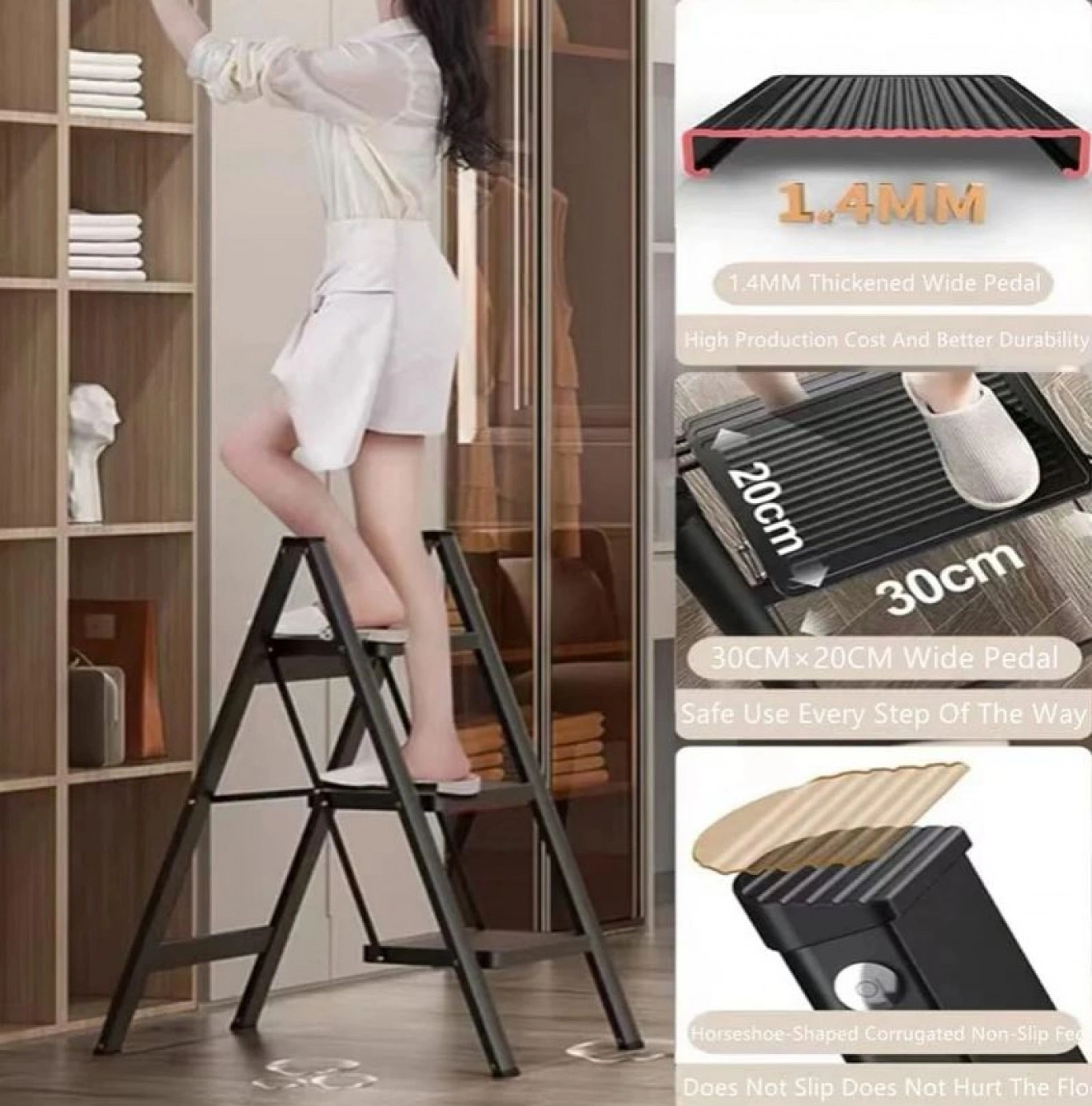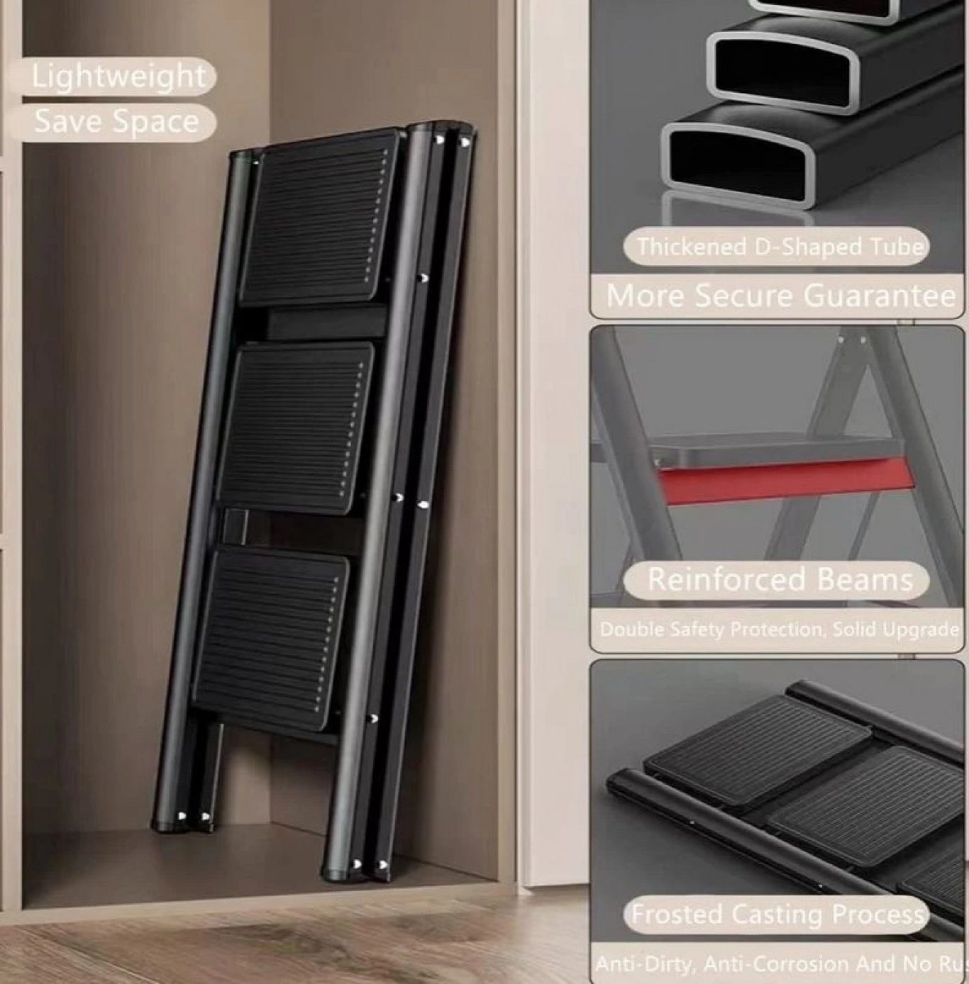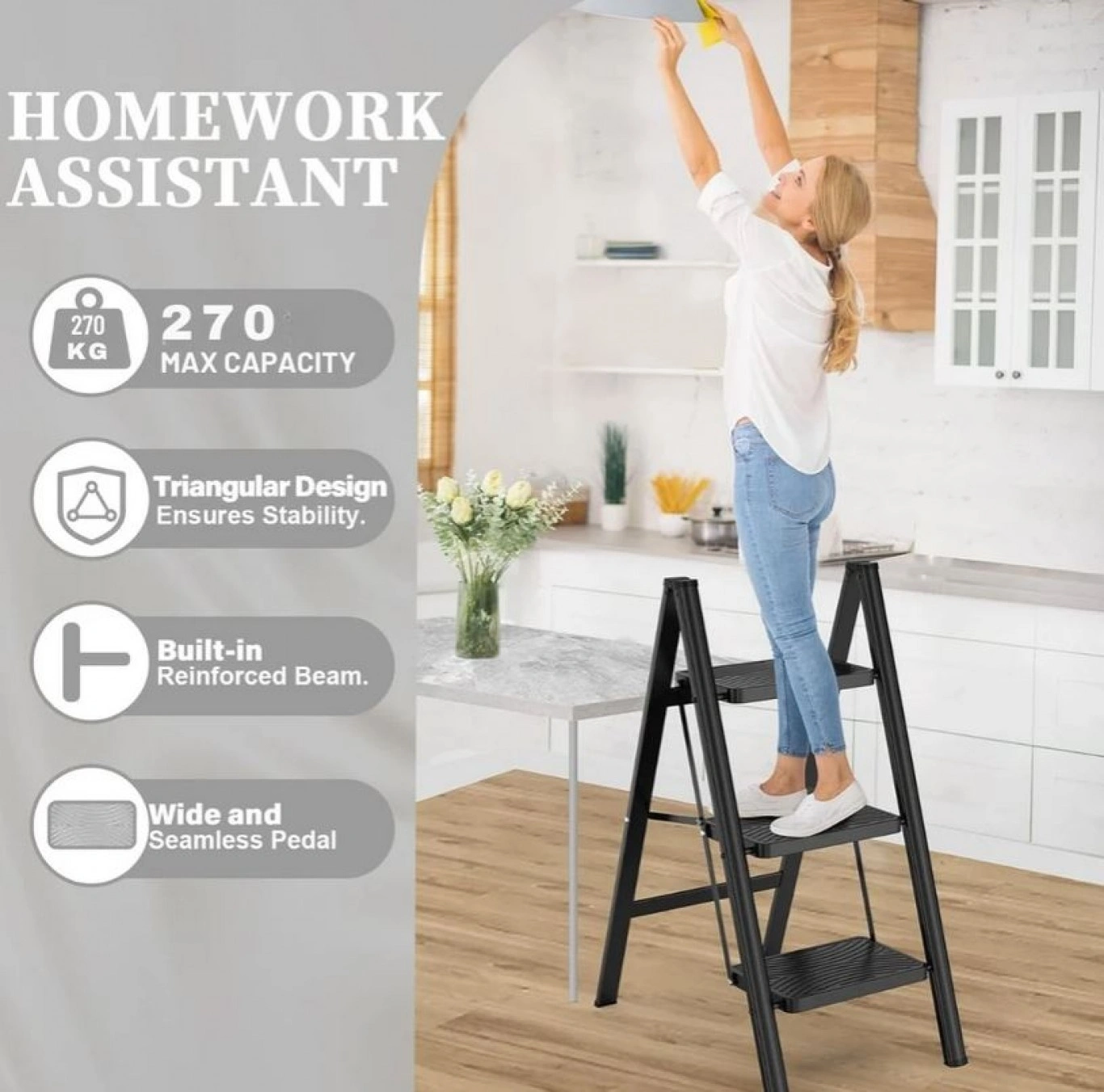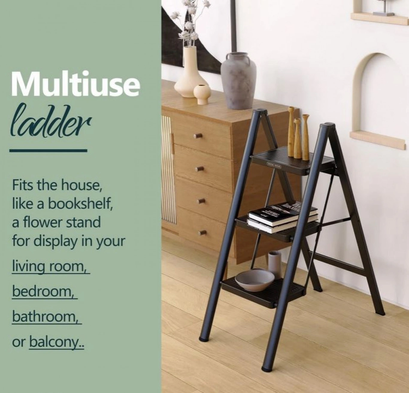 Εξαιρετική επιλογή για οικιακή και επαγγελματική χρήση, συνδυάζοντας πρακτικότητα, ασφάλεια και κομψό σχεδιασμό. ✔️Ασφάλεια : Τα αντιολισθητικά σκαλοπάτια και η στιβαρή κατασκευή εξασφαλίζουν σταθερότητα, μειώνοντας τον κίνδυνο ατυχημάτων.✔️Ευελιξία : Ιδανική για εργασίες σε σπίτι, γραφείο ή επαγγελματικό χώρο, όπως συντήρηση ή πρόσβαση σε ψηλά ράφια.✔️Φορητότητα : Το χαμηλό βάρος και η αναδιπλούμενη σχεδίαση διευκολύνουν τη μεταφορά και αποθήκευση.✔️Αισθητική : Ο μαύρος σχεδιασμός την καθιστά διακριτική και ταιριαστή σε κάθε περιβάλλον.