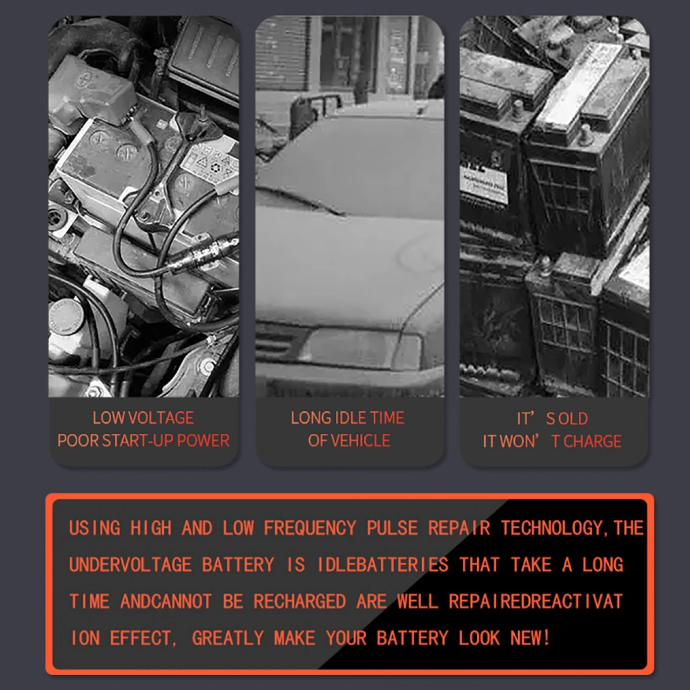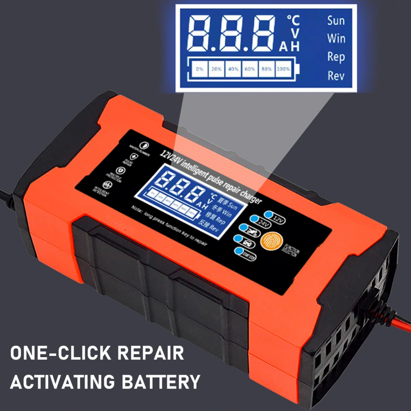 Ένα παλμικός φορτιστής μπαταρίας αυτοκινήτων, εξοπλισμένος με οθόνη LCD κατάλληλος για αυτοκίνητα , μοτοσυκλέτες, σκάφη και άλλα.✔️ Τεχνολογία έξυπνων παλμών για γρήγορη φόρτιση χωρίς να προκαλεί ζημιά.✔️ Κατάλληλος για μπαταρίες που είναι καιρό ανενεργές ή παλιές με την επιλογή λειτουργίας “Repair” για προσπάθεια επαναφοράς. ✔️ Προστασία αντίστροφης πολικότητας.✔️ Προστασία υπερβολικού ρεύματος.✔️ Προστασία υπέρτασης.✔️ Προστασία υπερφόρτισης.✔️ Προστασία υπερθέρμανσης.✔️ Κατάλληλος για μπαταρίες 12V✔️ Λειτουργία με μπαταρίες SLA, WET, MF, FLOODED, GEL, VRLA, AGM, EFB.
