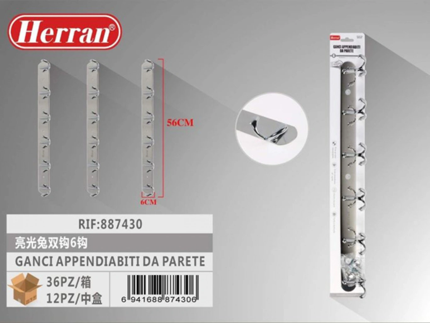 Ανοξείδωτη Κρεμάστρα με 6 Διπλά Γαντζάκια 56x6x2 εκ
