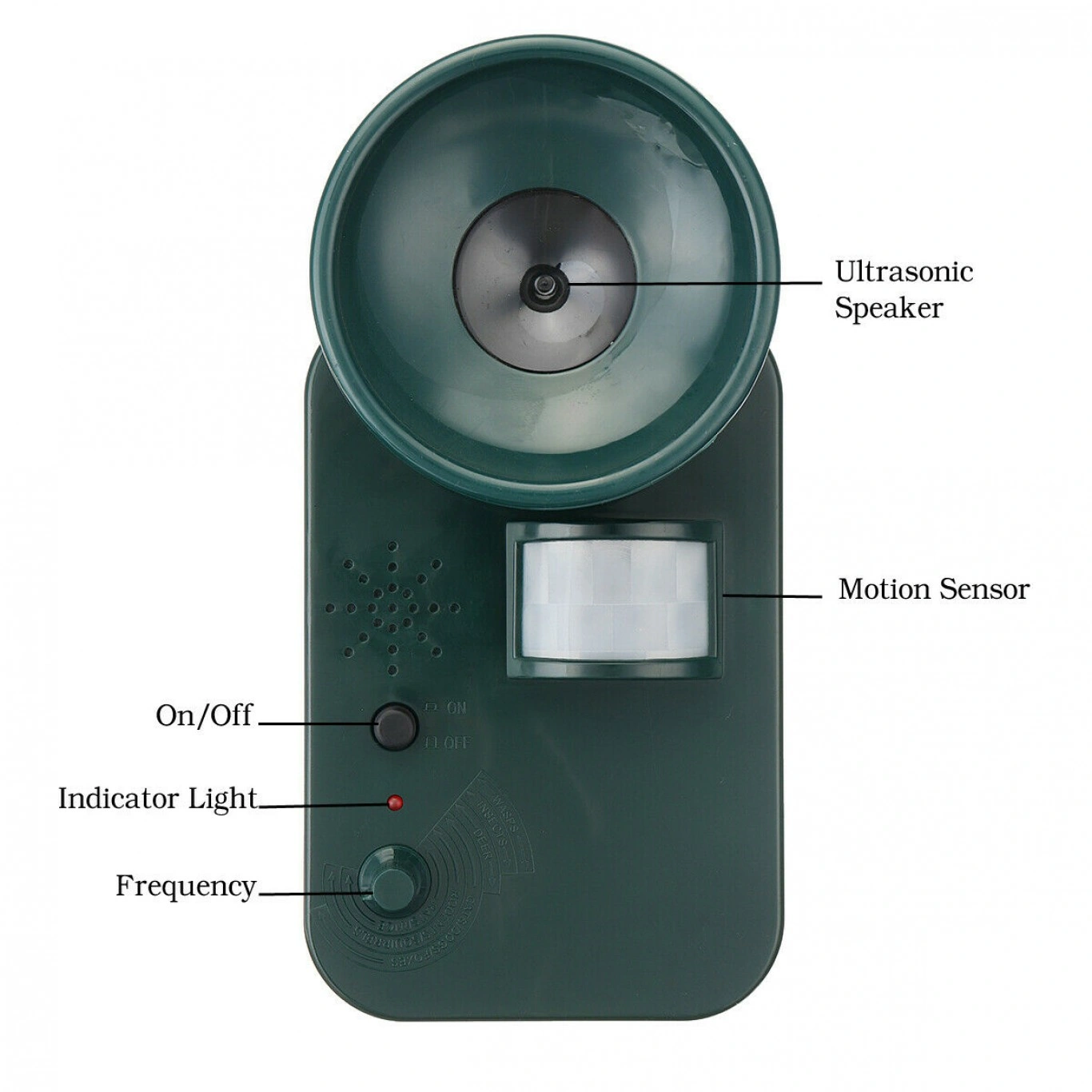 ✔️Ο υπέρηχος που εκπέμπει είναι ενοχλητικός για τα ζώα και απομακρύνονται απο την συσκευή άρα και απο την περιοχή κάλυψης. Ταυτίοχρονα είναι εντελώς ακίνδυνο για τα ζώα. Λειτουργεί με μπαταρίες χωρίς την ανάγκη καλωδίων και ρεύματος, ενώ διαθέτει αισθητήρα για να λειτουργεί μόνο εφόσον εντοπίσει κίνηση, για οικονομία και μεγαλύτερη αυτονομία. Συσκευή κατάλληλη για εξωτερικούς χώρους. Διαθέτει ροοστάτη για να ρυθμίζετε την δύναμη της ισχύος που επιθυμείτε!