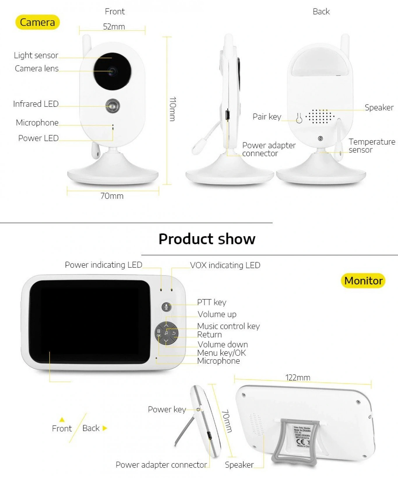 Ασύρματη Ενδοεπικοινωνία Μωρού με Κάμερα, Έγχρωμη Οθόνη LCD 3.5″, Νυχτερινή Όραση, Ανίχνευση Θερμοκρασίας, Μικρόφωνο και Νανουρίσματα ZR303 OEM