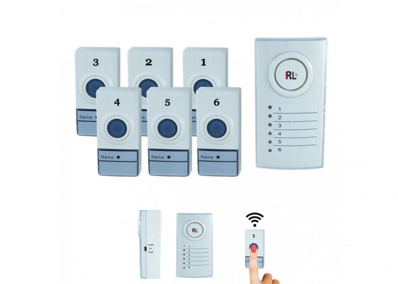 Αυτό το ασύρματο σύστημα με 6 κουδούνια 433 MHz είναι το ιδανικό σύστημα για χώρους που θέλετε να καλύψετε έως και 6 ζώνες.