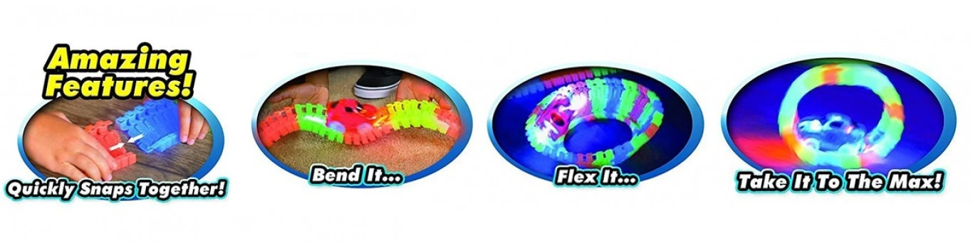 Σας παρουσιάζουμε τον αυτοκινητόδρομο με το εκπληκτικό αγωνιστικό αμαξάκι που μπορεί να λάμψει! Μπορείτε να αλλάξετε τον σχεδιασμό της διαδρομής σας σε οποιοδήποτε μοτίβο χάρη στα ειδικά κομμάτια κούρσας που ενώνονται πολύ εύκολα!