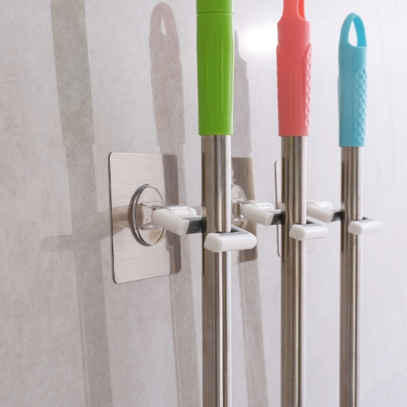 Μια εξαιρετικά λειτουργική λύση για να έχετε τις σκούπες σας πάντα τακτοποιημένες. Μπορεί να τοποθετηθεί σε οποιαδήποτε ομαλή επιφάνεια όπως πλακάκια, γυαλί, ανοξείδωτο χάλυβα, τσιμέντο ή οπουδήποτε μπορείτε να σκεφτείτε. Οι σφουγγαρίστρες και οι σκούπες παραμένουν σταθερές στη θέση τους. Αδιάβροχο και ανθεκτικό.