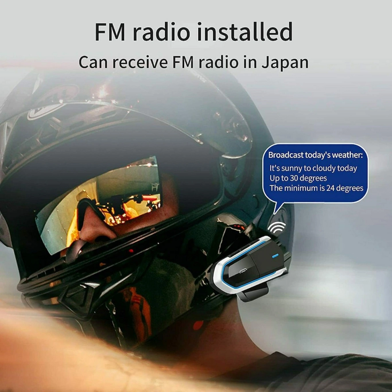 Επιτρέπει στους αναβάτες ή αθλητές να λαμβάνουν φωνητικές οδηγίες GPS, να επικοινωνούν πχ. με επιβάτη σε αυτοκίνητο, ή να πραγματοποιούν κλήσεις στο κινητό τους τηλέφωνο και να ακούνε μουσική. Σχεδιασμένο για ασφαλέστερη και ευκολότερη οδήγηση, το σετ μικροφώνου-ακουστικού έχει λειτουργία Bluetooth για κλήσεις κινητού τηλεφώνου, στερεοφωνική αναπαραγωγή μουσικής και ραδιόφωνο FM. Το προηγμένο chipset BT CSR και ο ενσωματωμένος ενισχυτής ακουστικών στο εσωτερικό του, παρέχουν καλύτερη στερεοφωνική εμπειρία μουσικής και τηλεφωνικών κλήσεων. Λεπτή, μικρή και αδιάβροχη σχεδίαση.