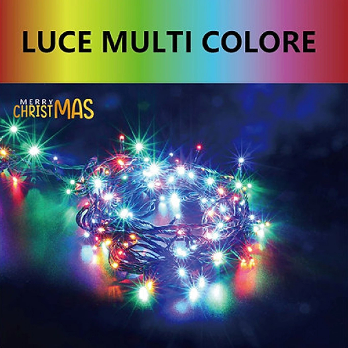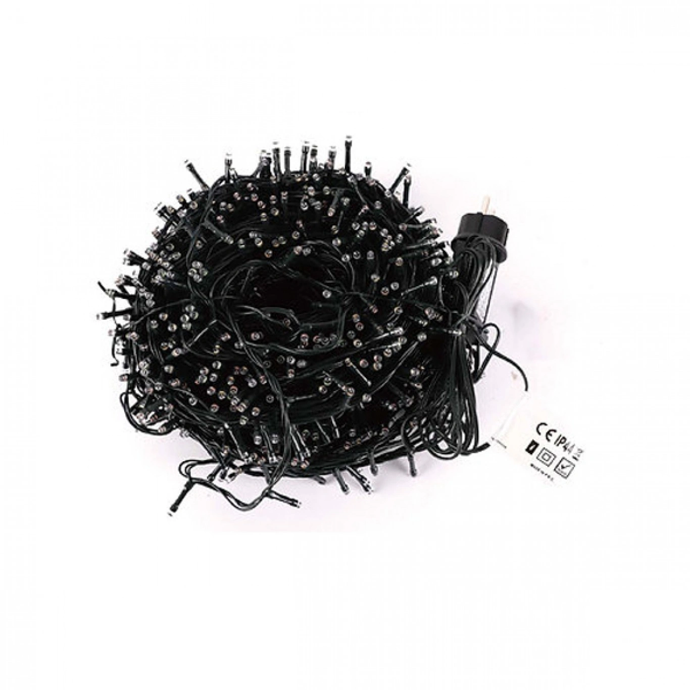 Χριστουγεννιάτικα λαμπάκια σειρά της Arrango μήκους 53m, με 1000 λαμπάκια led. Εκπέμπουν φως σε διάφορα χρώματα χρώμα και έχουν πράσινο καλώδιο. Διαθέτουν βαθμό προστασίας IP44, που δηλώνει ότι δεν μπορούν να εισχωρήσουν στερεά αντικείμενα άνω του ενός χιλιοστού αλλά ούτε και νερό με μεγάλη ένταση. Λειτουργούν με ρεύμα.