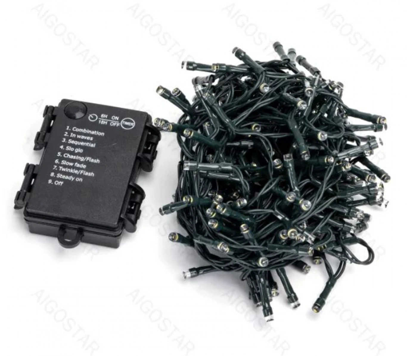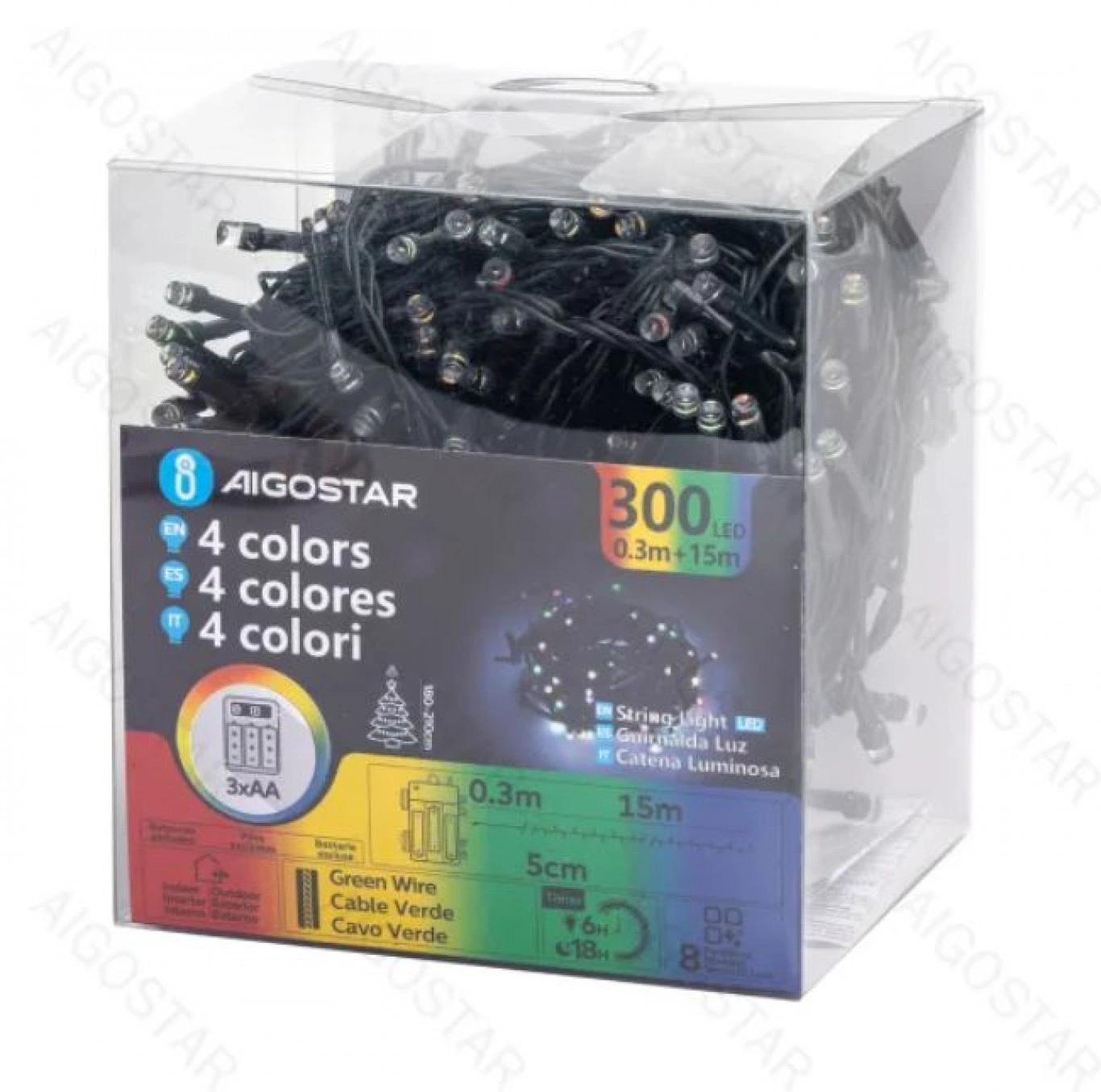 Χριστουγεννιάτικα Λαμπάκια Μπαταρίας με Πράσινο Καλώδιο 15m με Πολύχρωμο Φωτισμό  και 8 Προγράμματα Λειτουργίας 29774